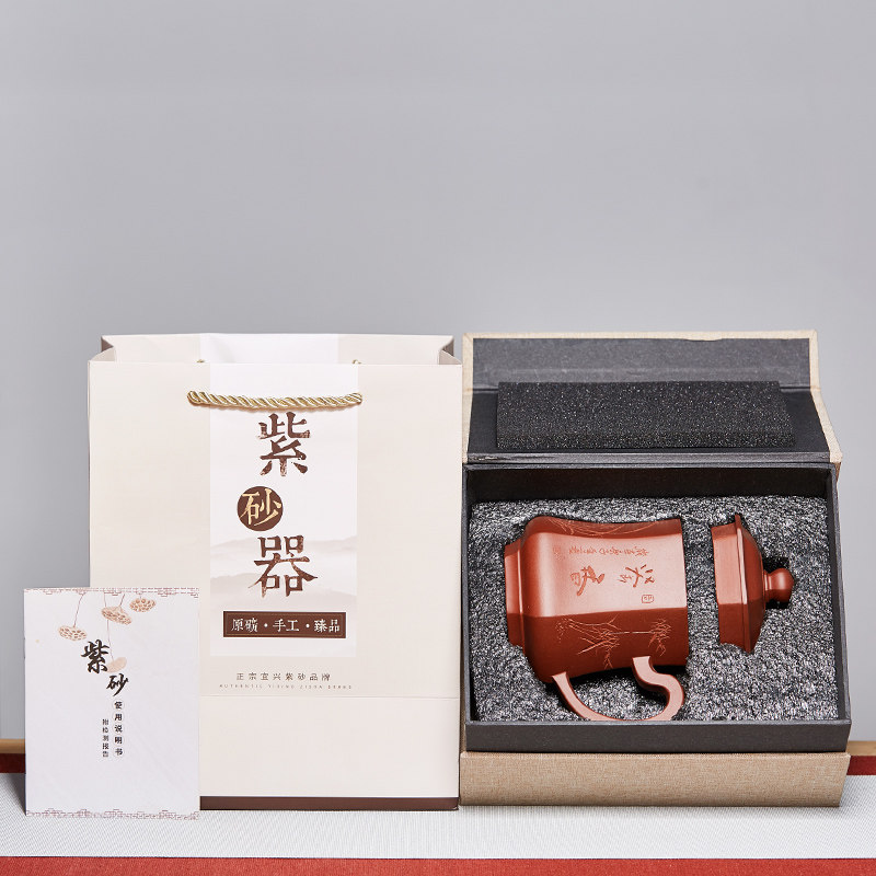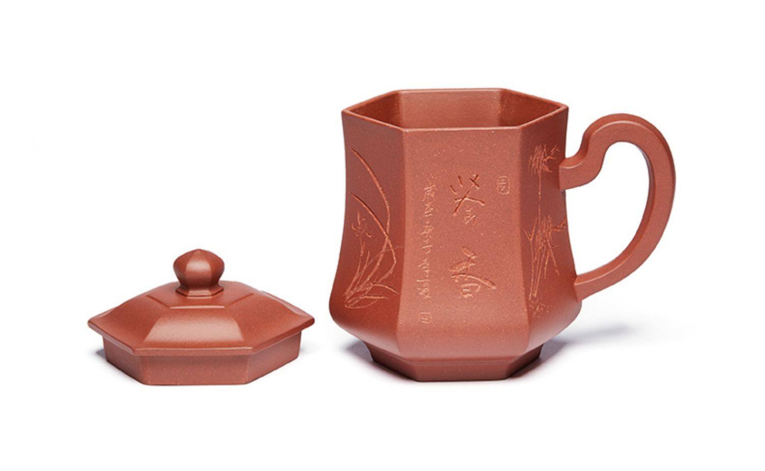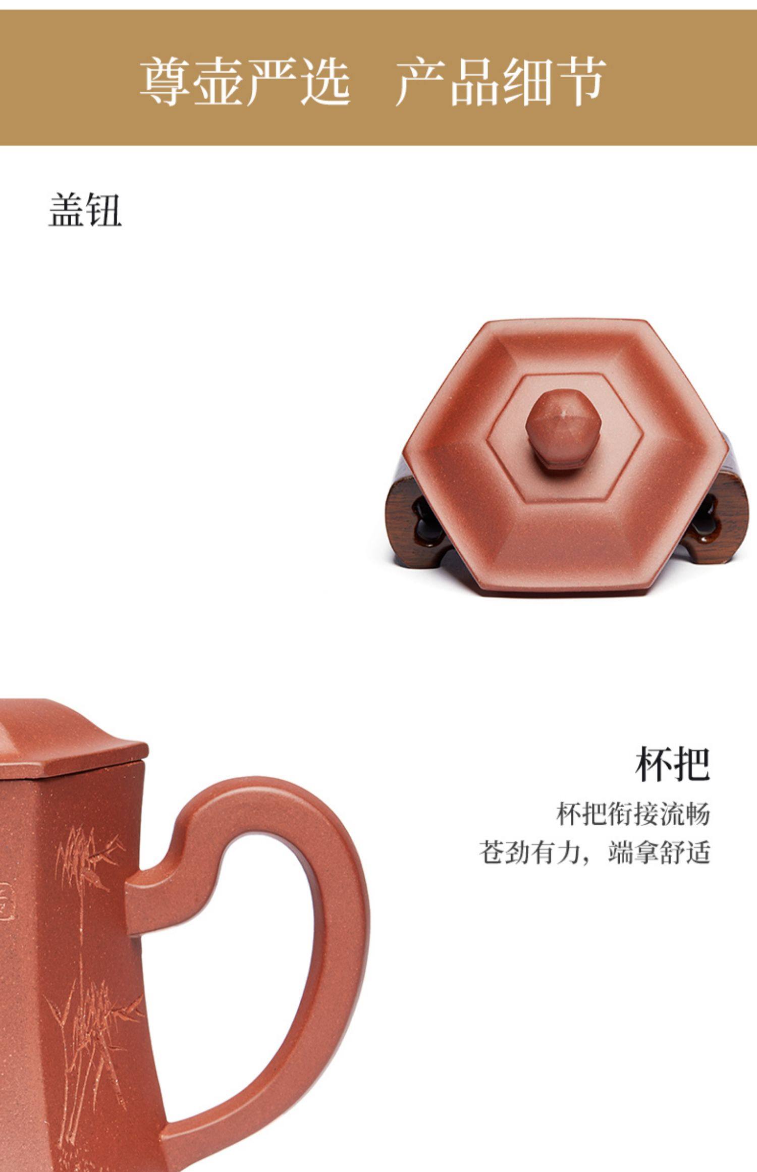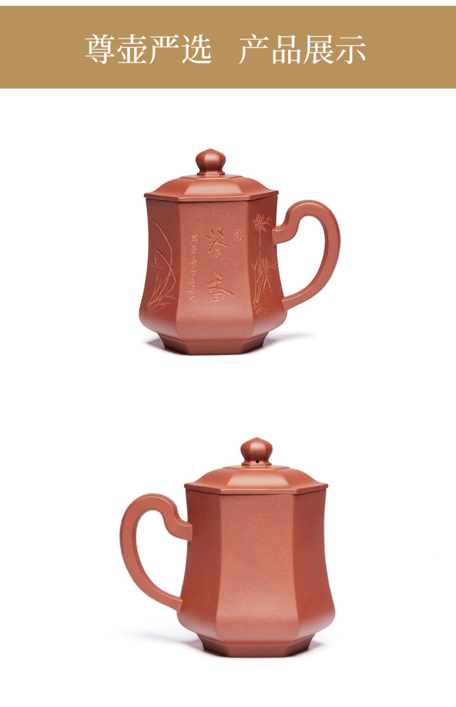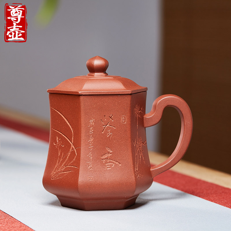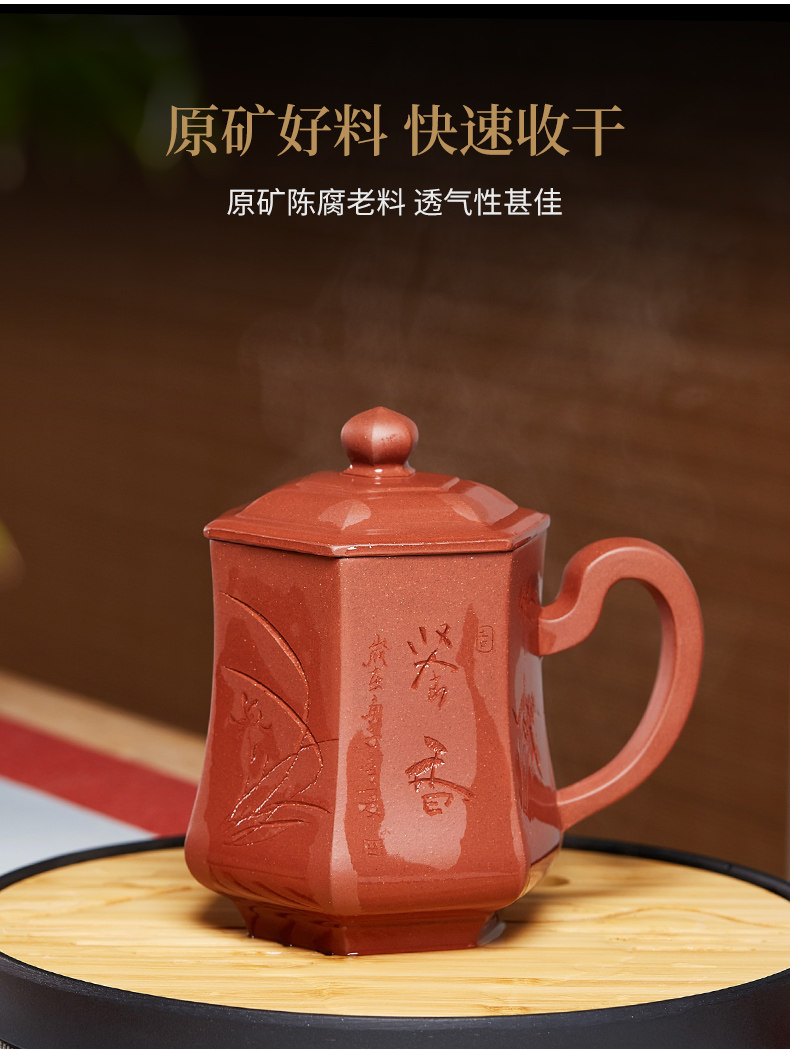 紫砂杯六方兰花泡茶杯大容量带盖水杯子陶瓷办公家用茶具