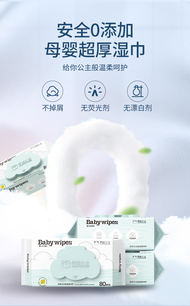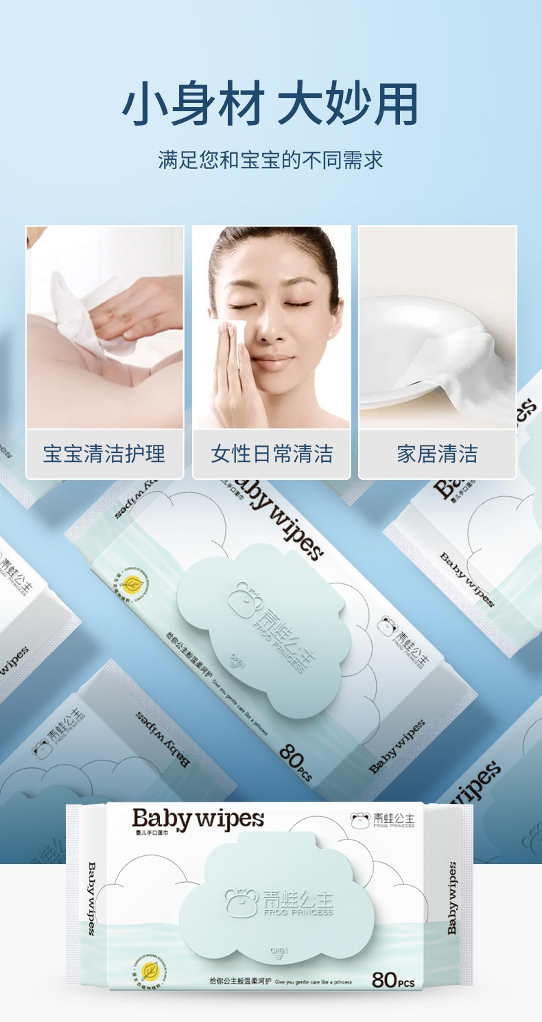 青蛙公主蓝Baby80抽新生婴儿湿巾宝宝手口大包家用儿童手口湿巾