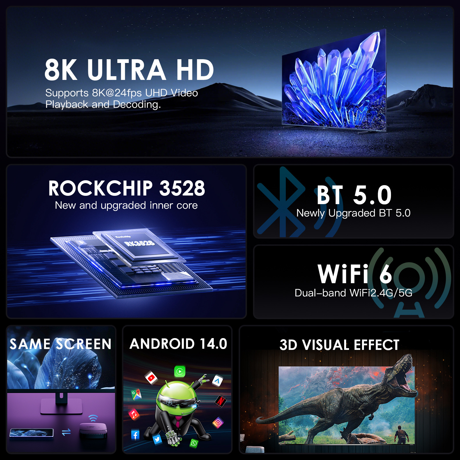 机顶盒安卓14网络电视机盒子6KRK3528TVBOX高清网络播放