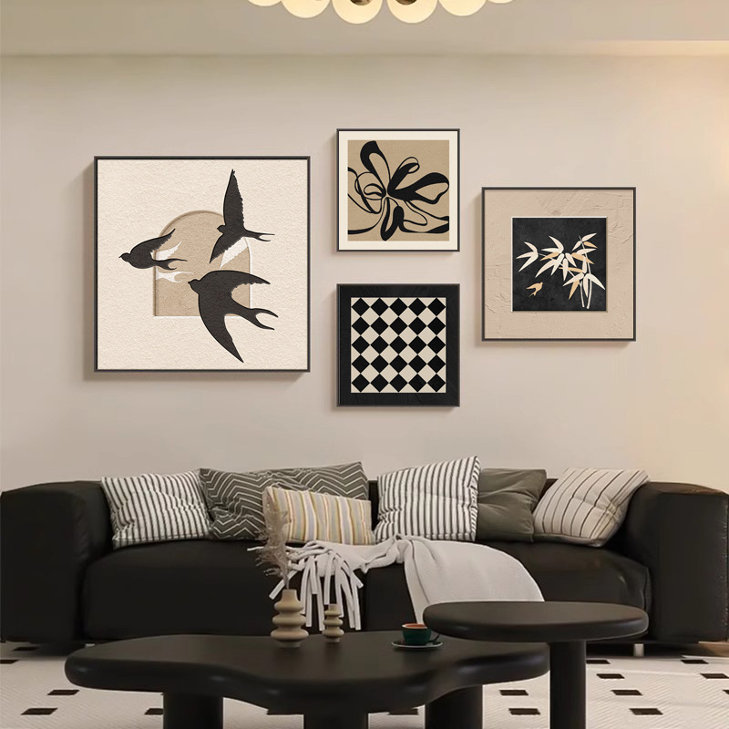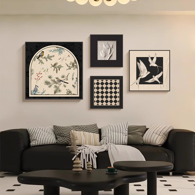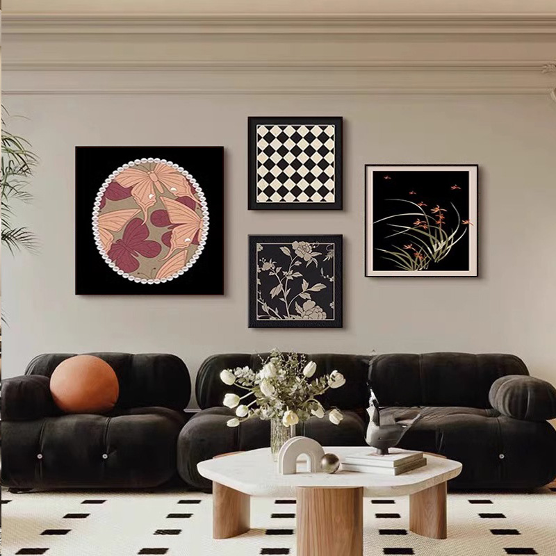 中古风装饰画高级感客厅沙发背景墙壁画样板间法式复古组合挂画