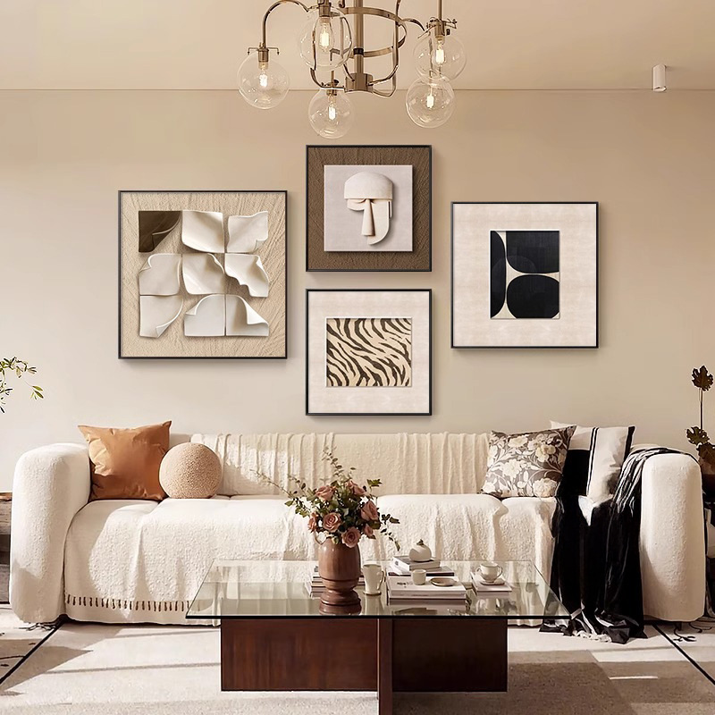 - 铝合金黑框+画布面中组合【适合2.5-3m沙发】(70*70+40*40*2+50*50cm)