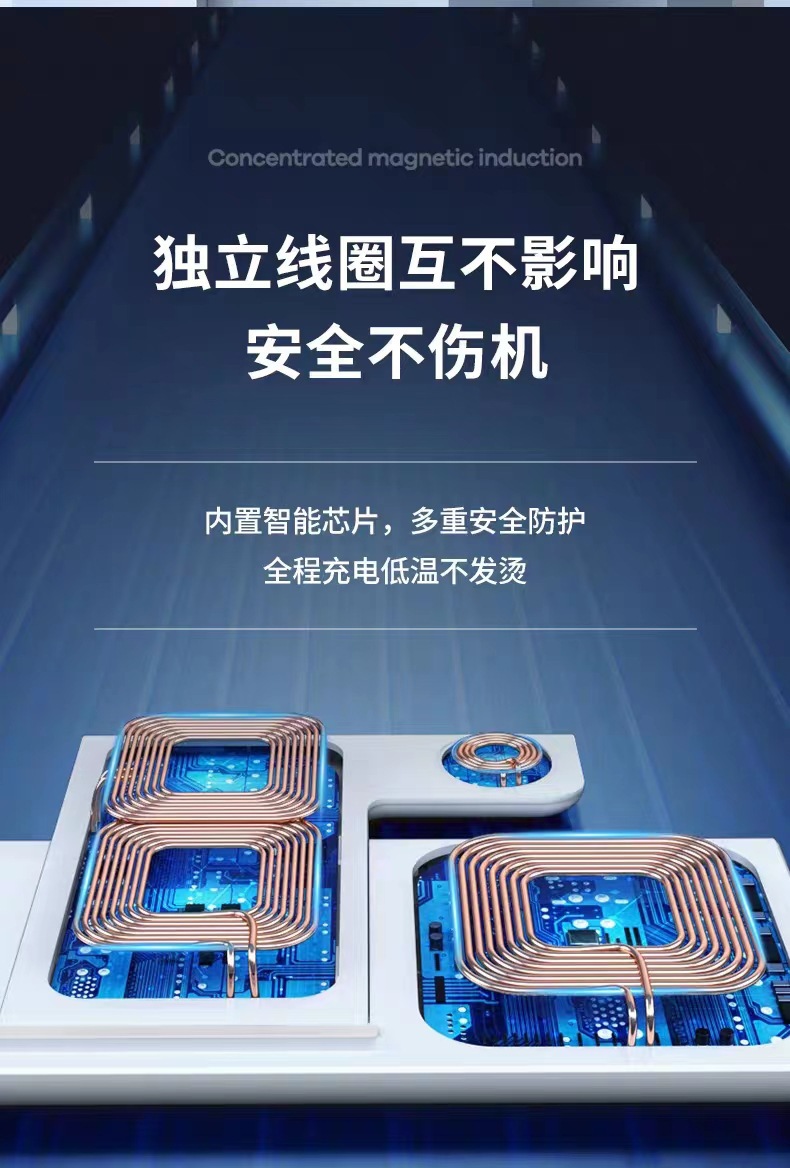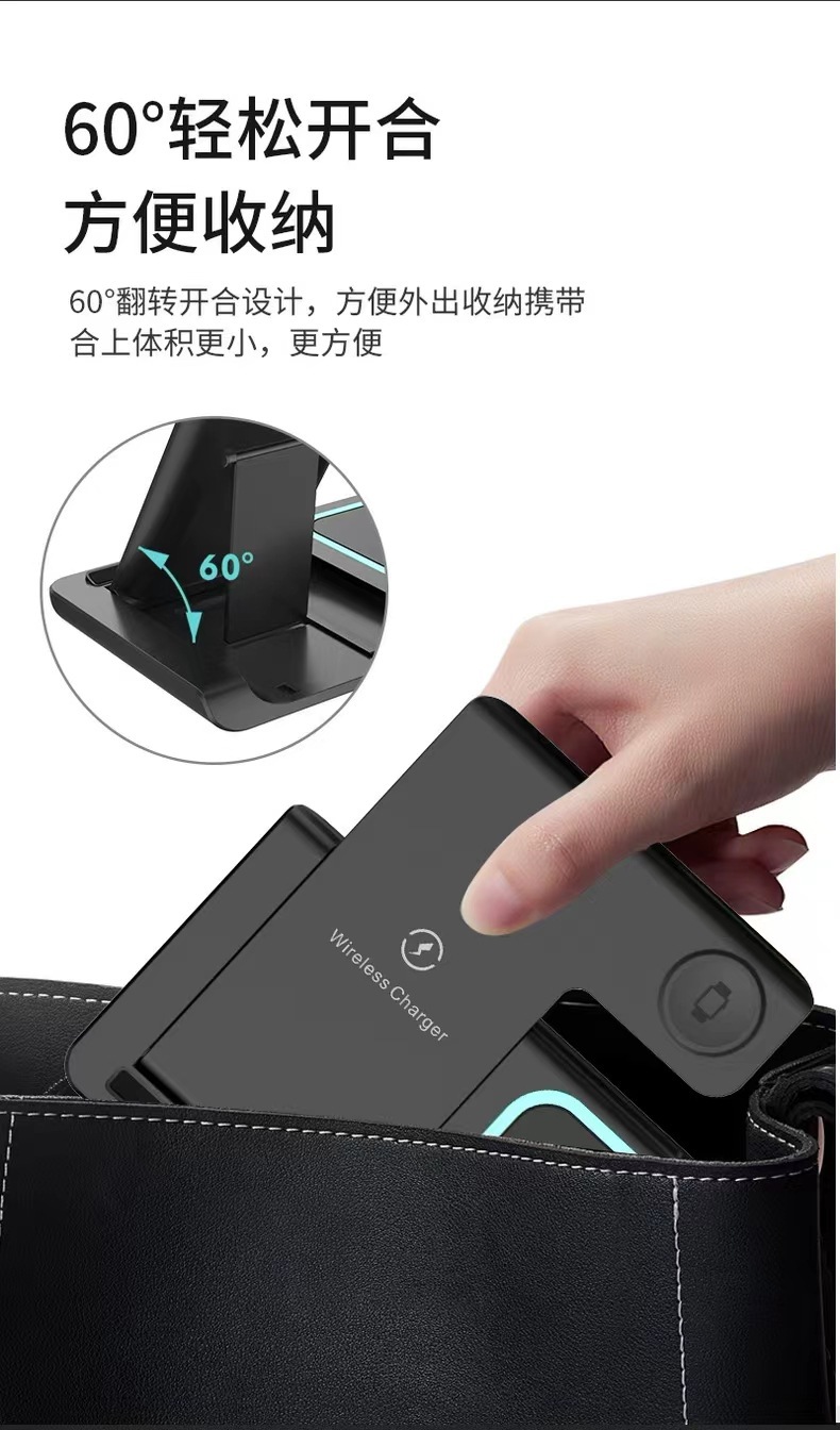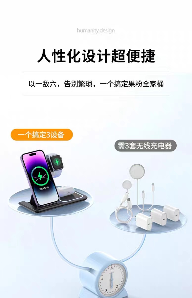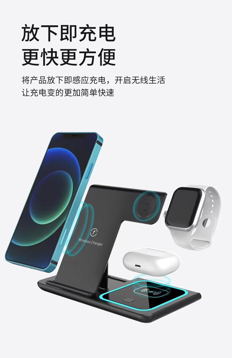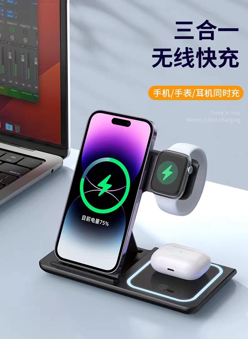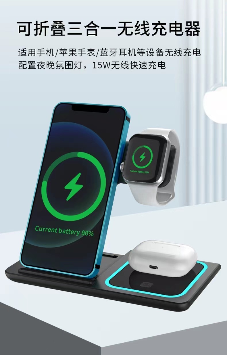 三合一无线充电器快充15W适用苹果手机手表耳机磁吸充电底座