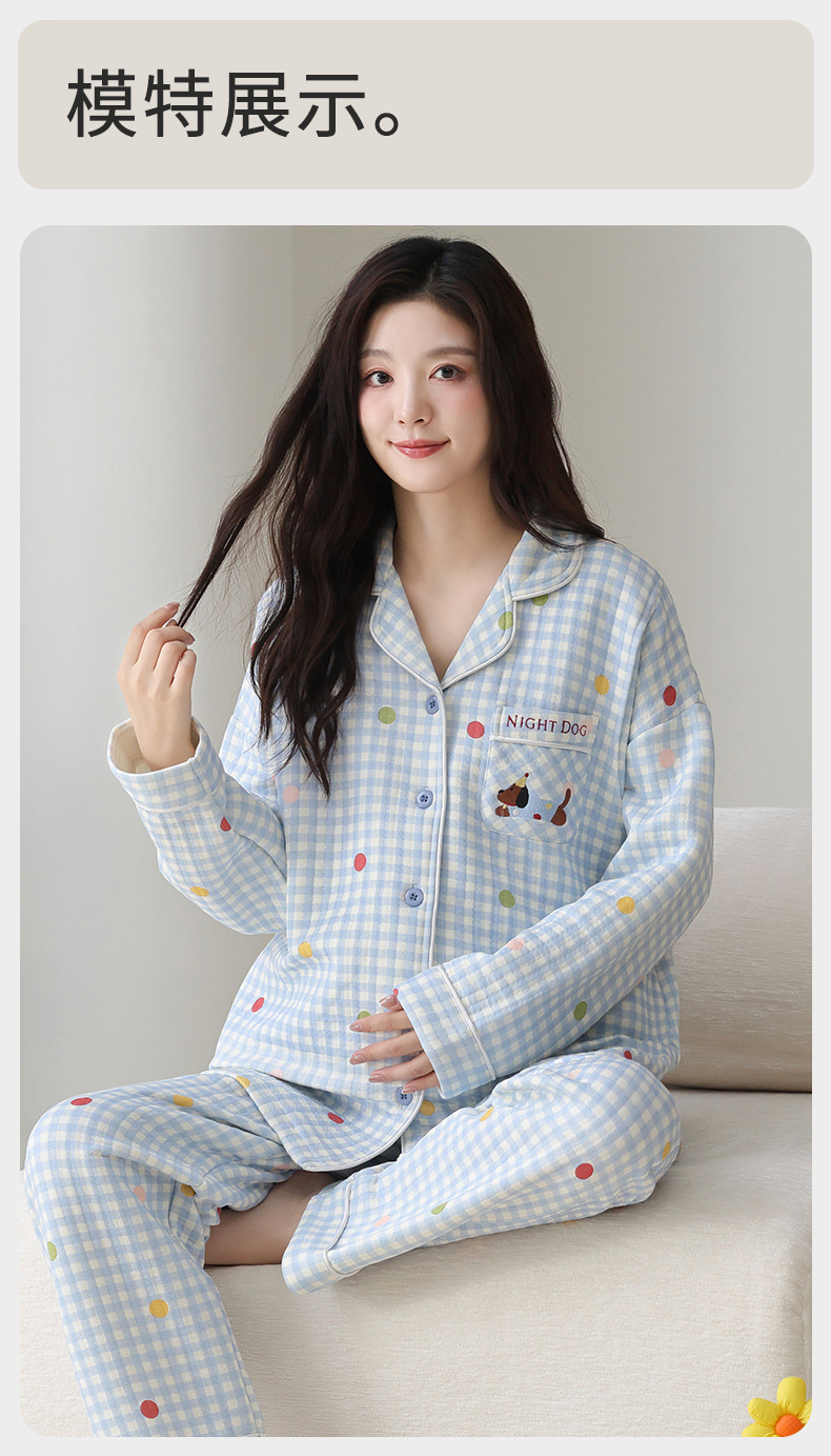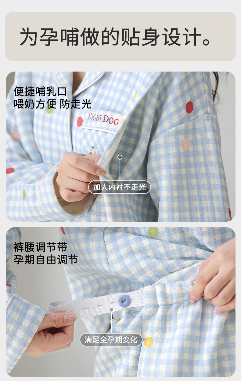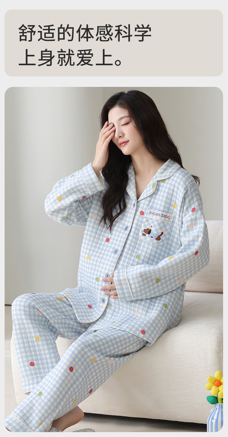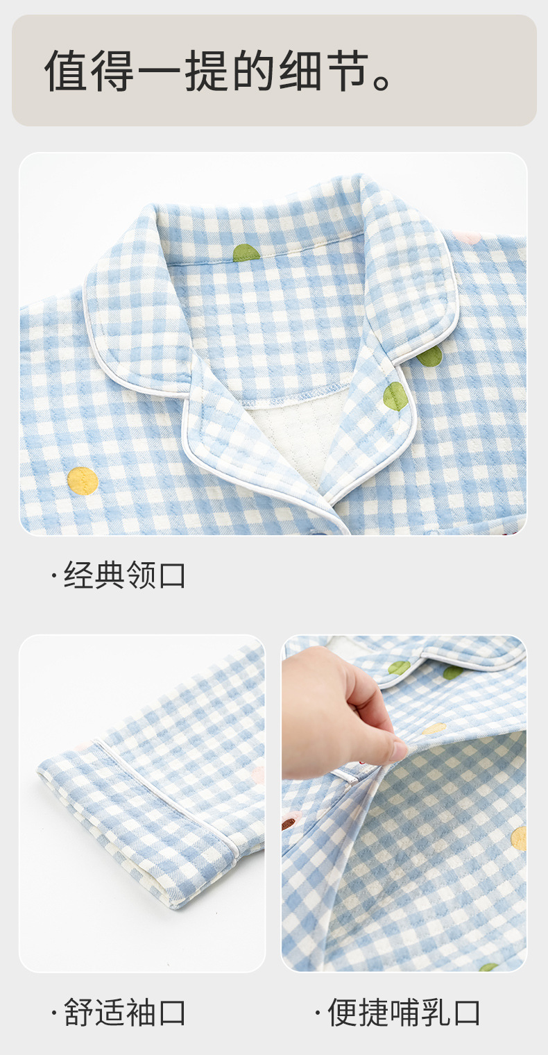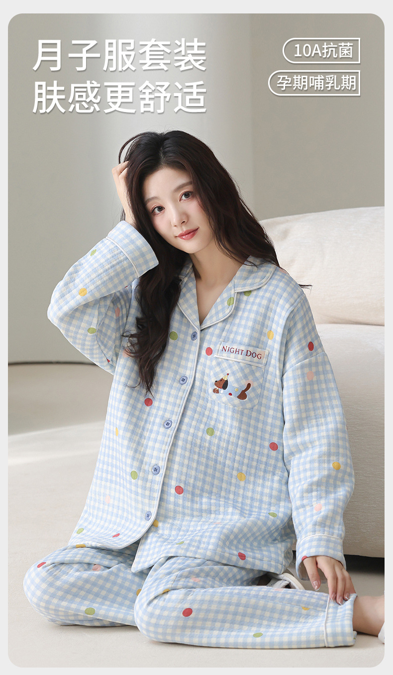 喜月秋冬季10A抗菌月子服孕妇纯棉空气棉夹层坐月子哺乳喂奶睡衣