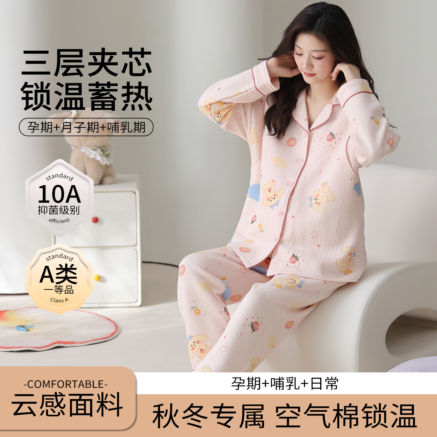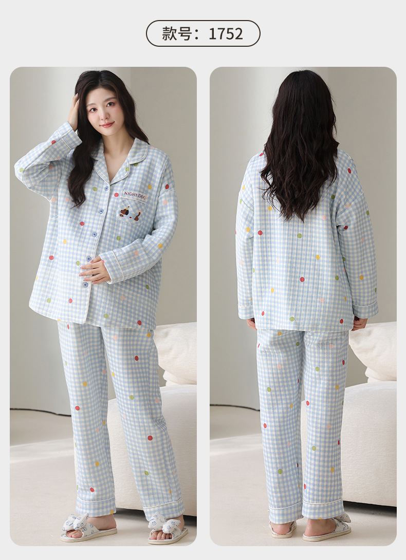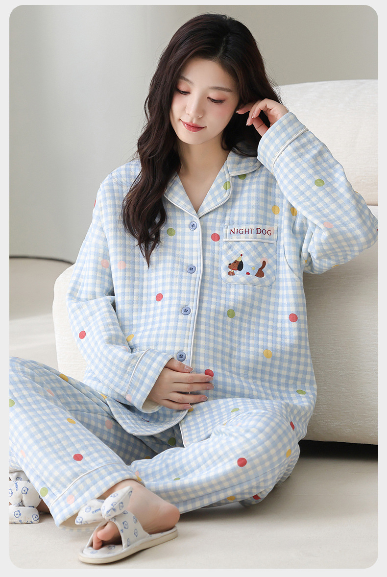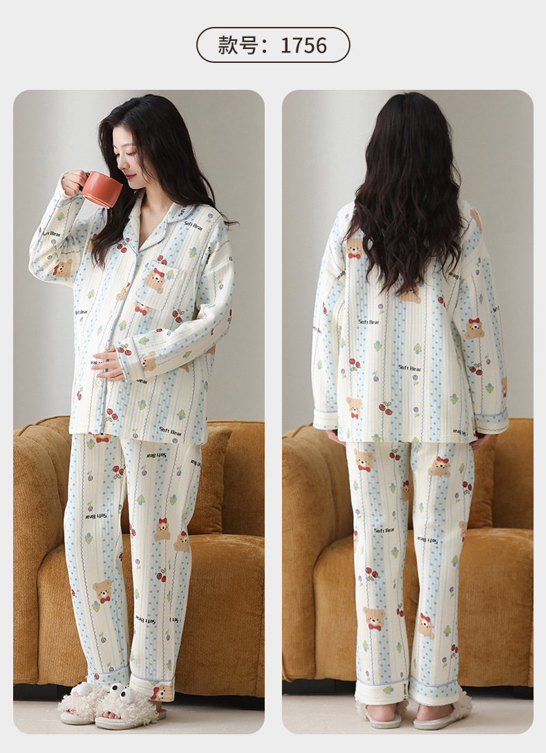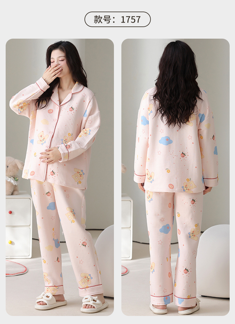 喜月秋冬季10A抗菌月子服孕妇纯棉空气棉夹层坐月子哺乳喂奶睡衣