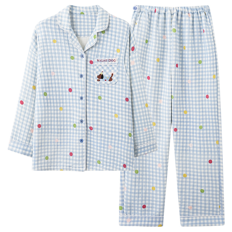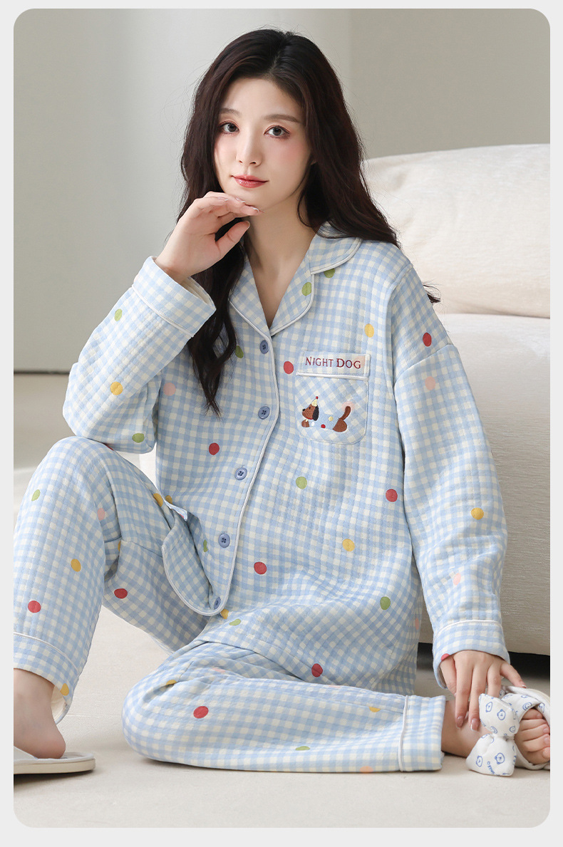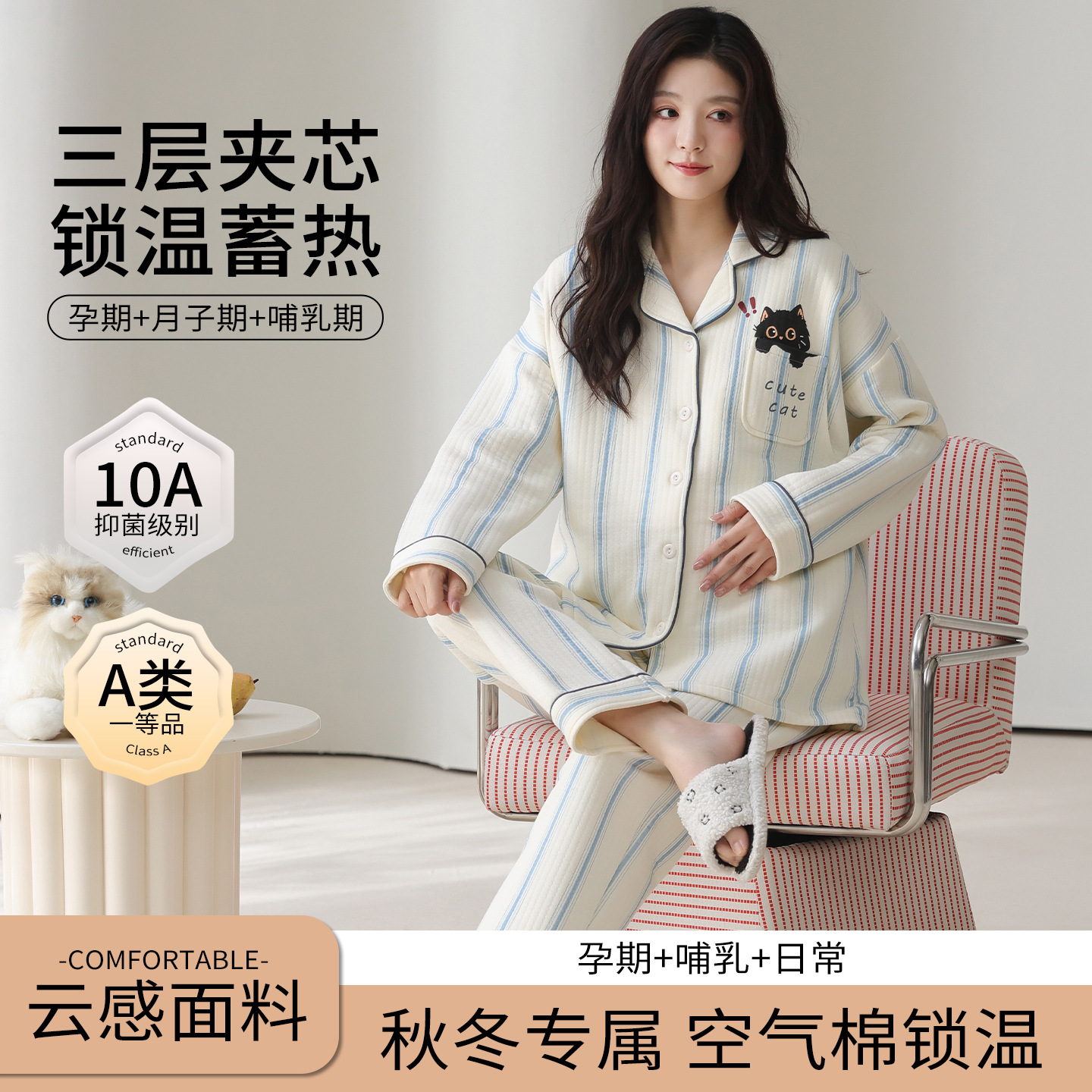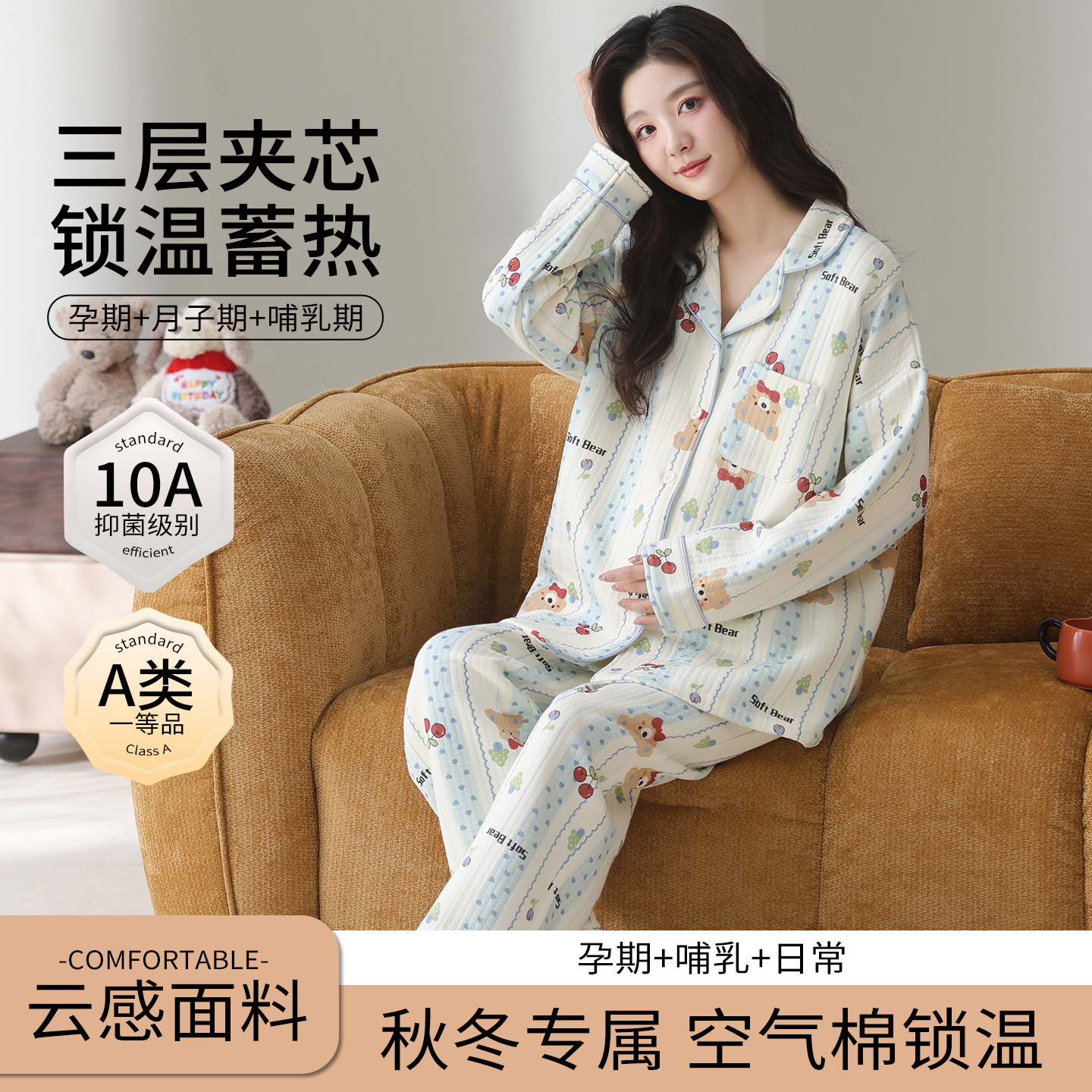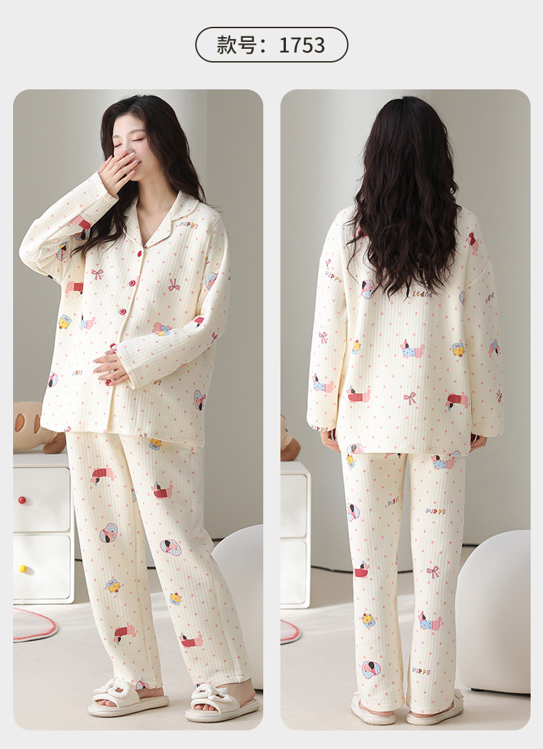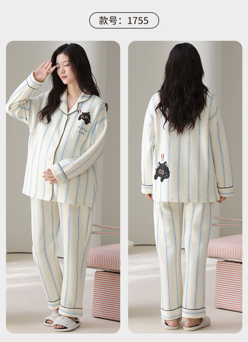 喜月秋冬季10A抗菌月子服孕妇纯棉空气棉夹层坐月子哺乳喂奶睡衣