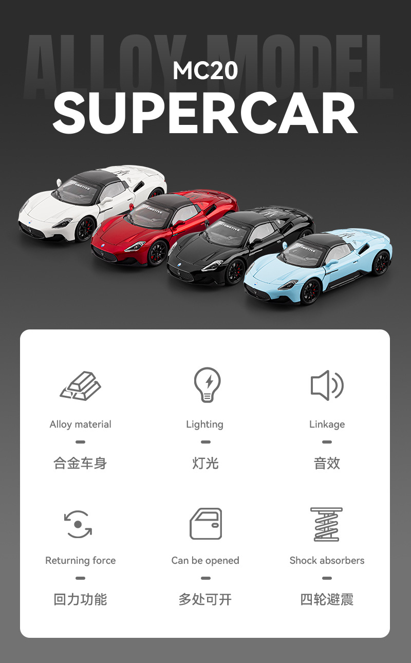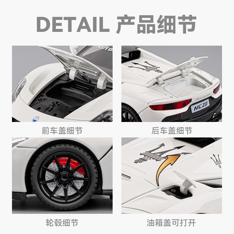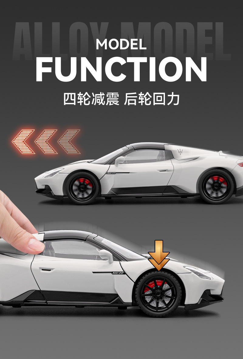 盒装1:24玛莎#拉蒂模型仿真合金车模mc20跑车男孩儿童玩具小汽车