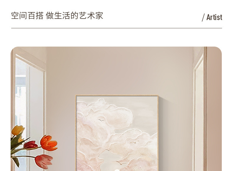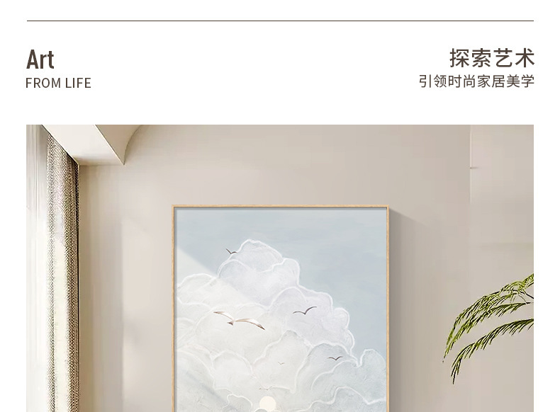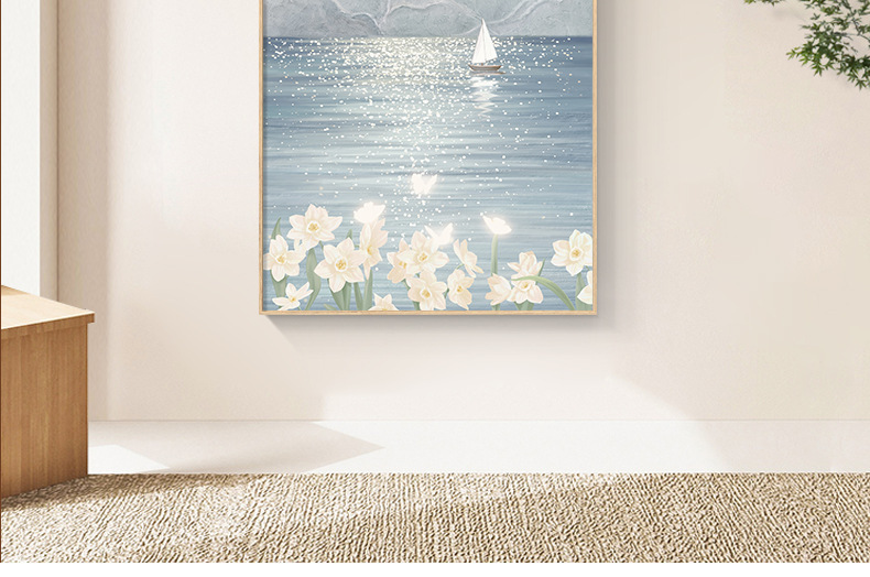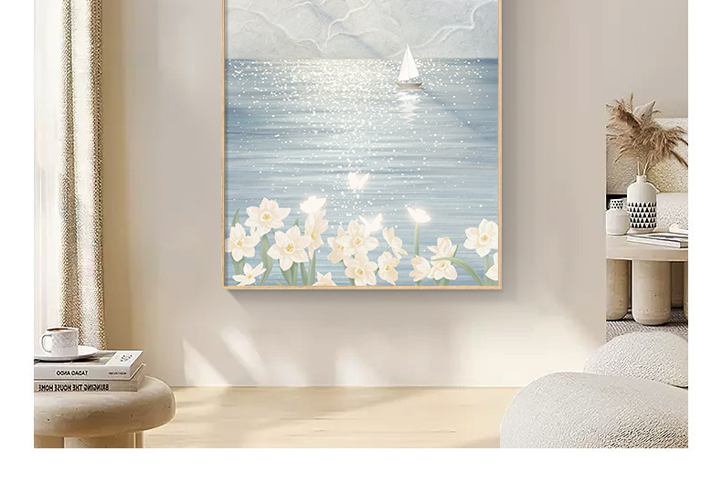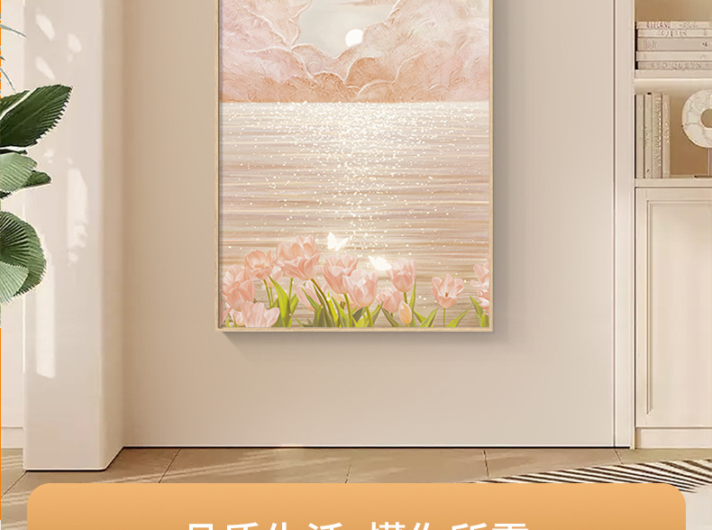 北欧奶油风入户玄关装饰画走廊过道挂画客厅背景墙面高级海景壁画