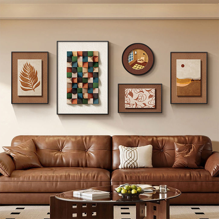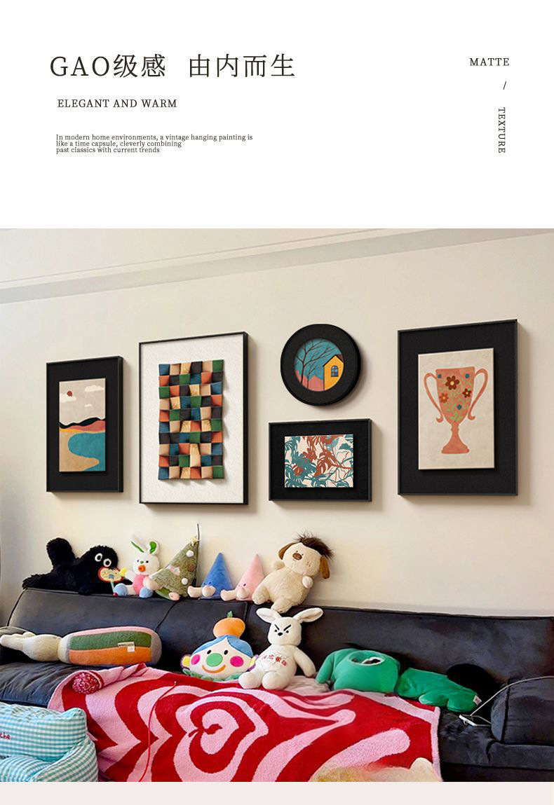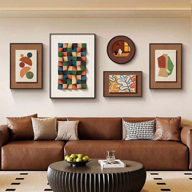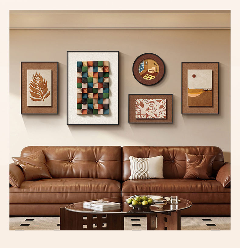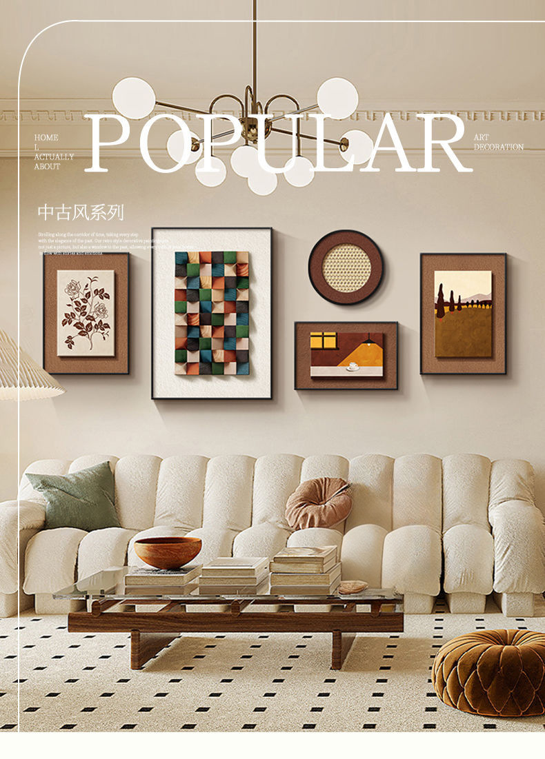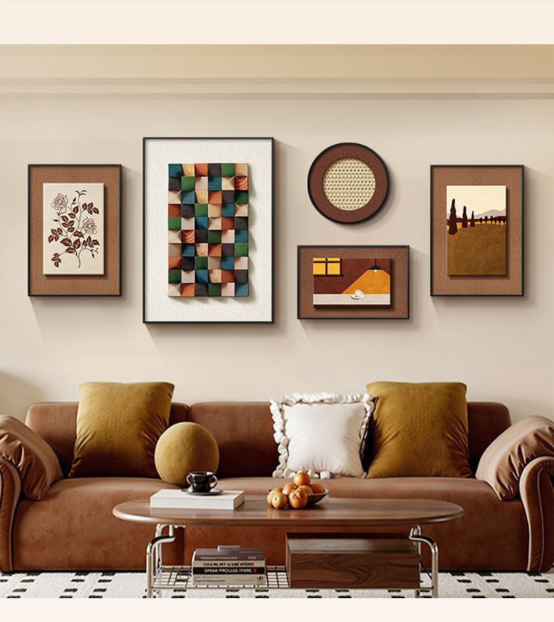 法式中古风客厅装饰画高级艺术组合壁画美拉德复古沙发背景墙挂画