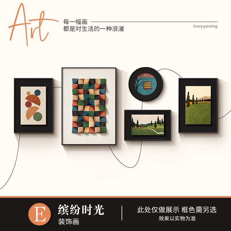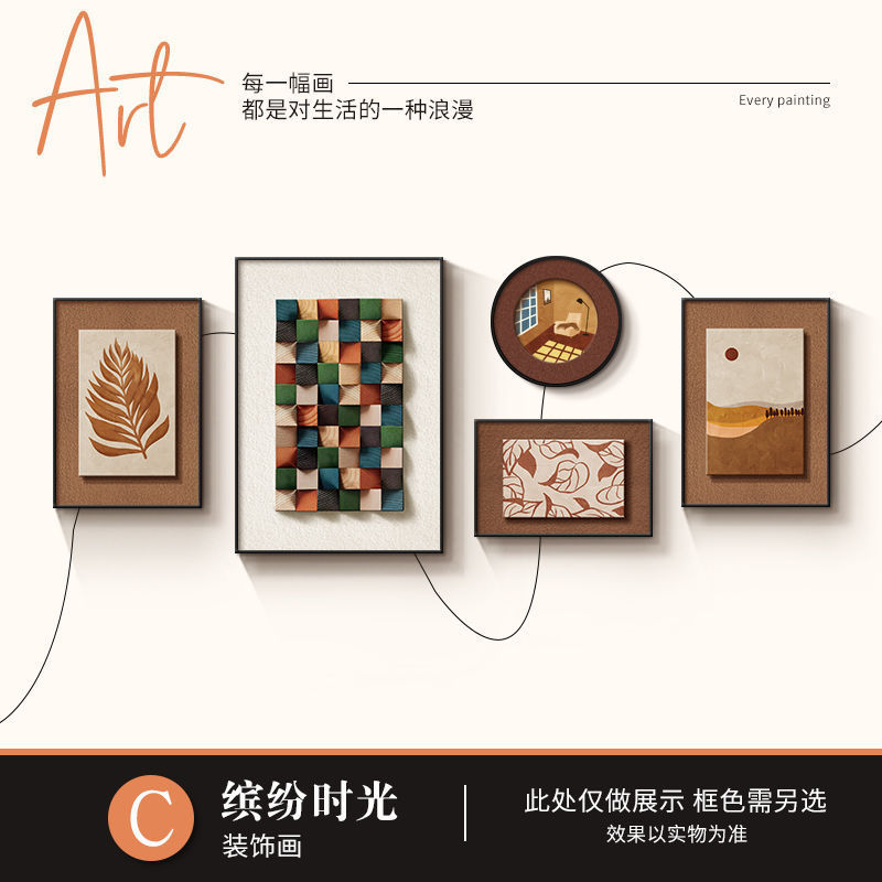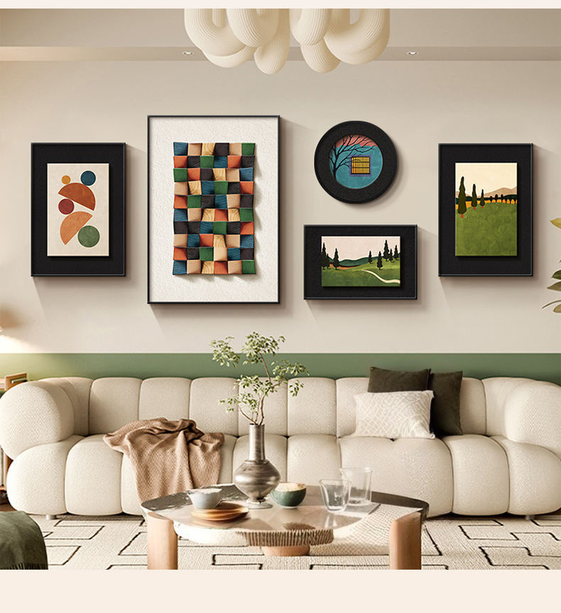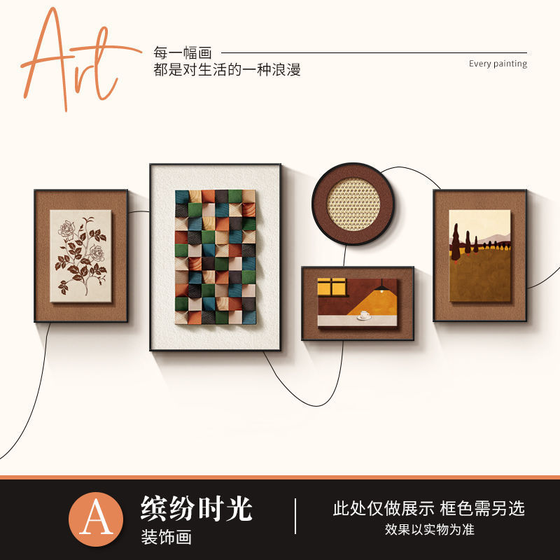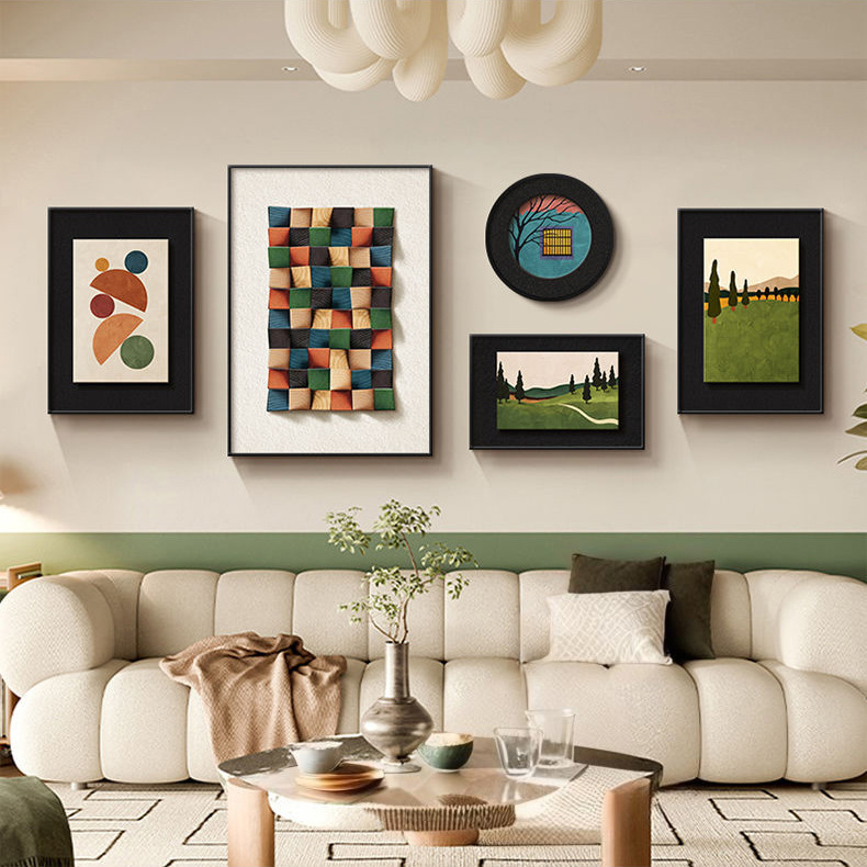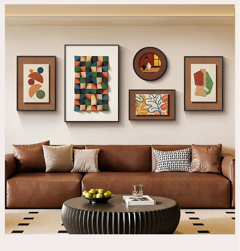 法式中古风客厅装饰画高级艺术组合壁画美拉德复古沙发背景墙挂画