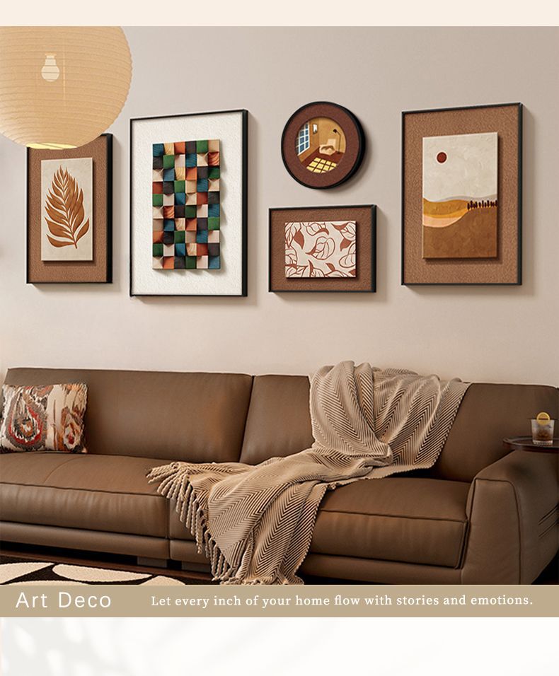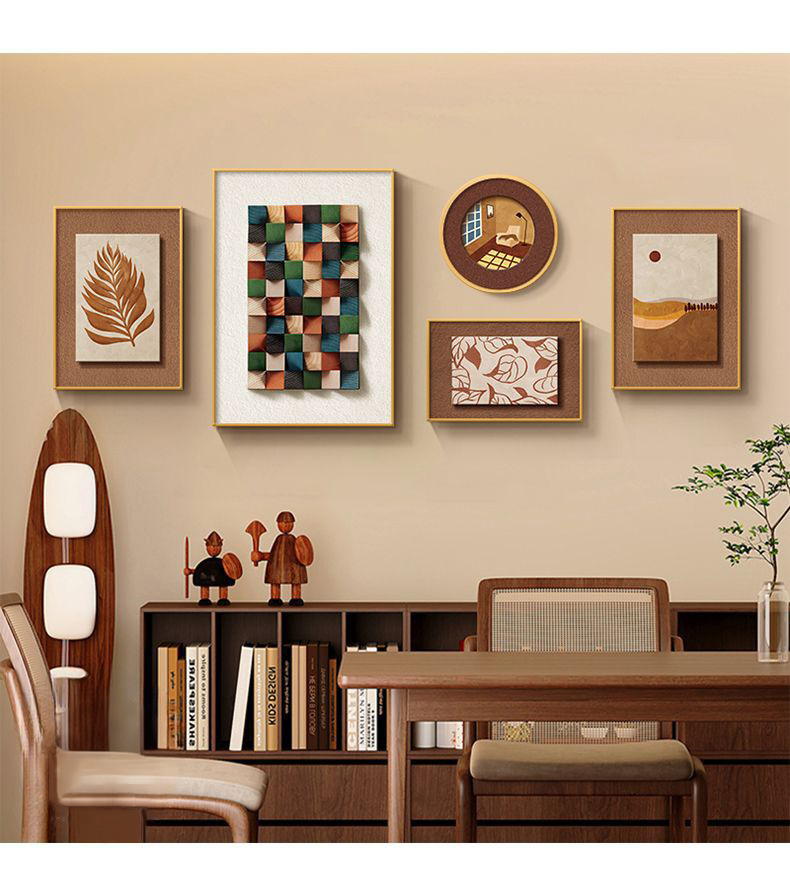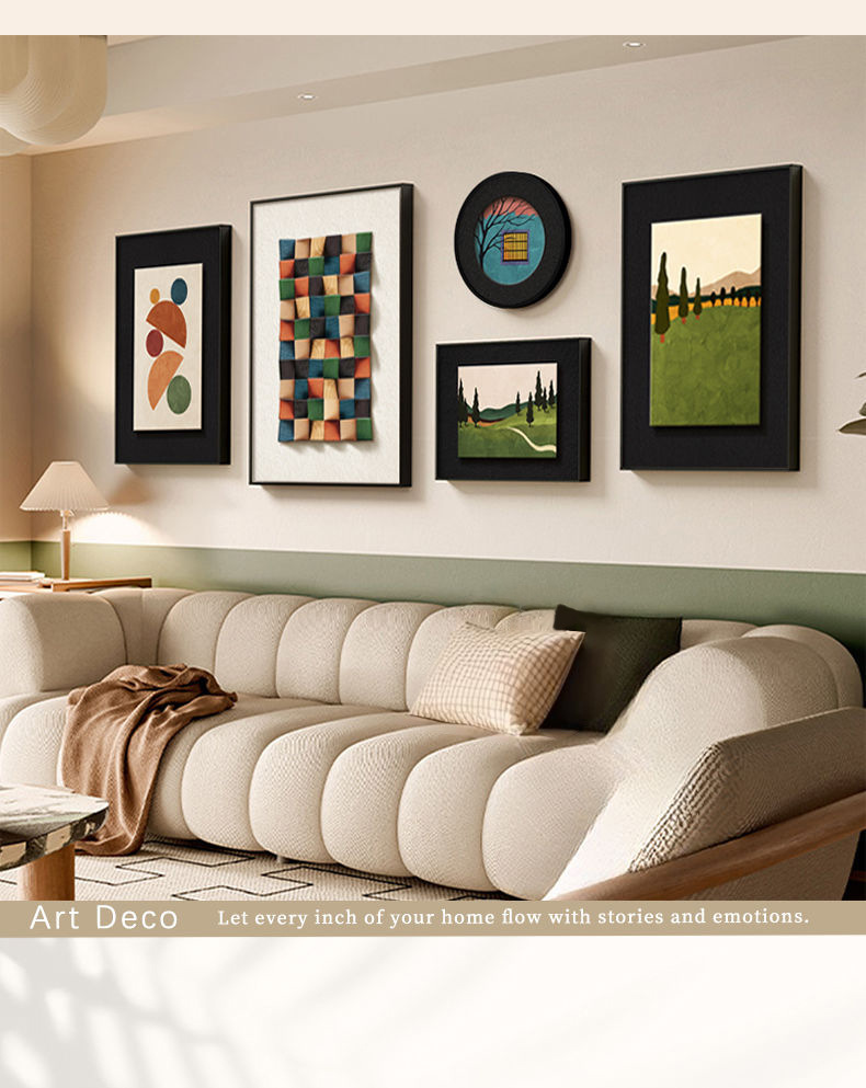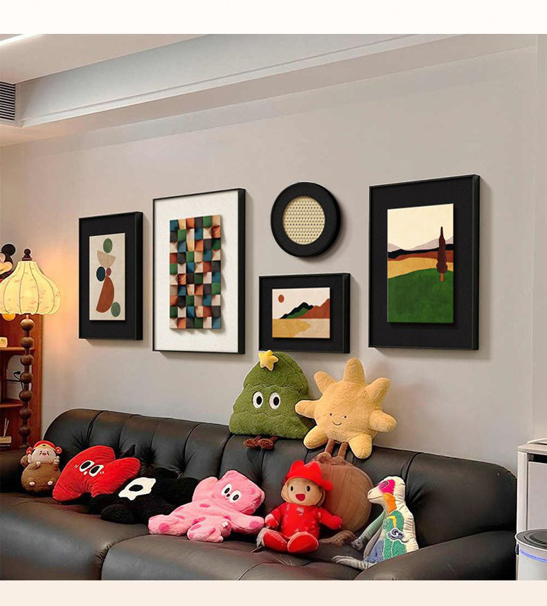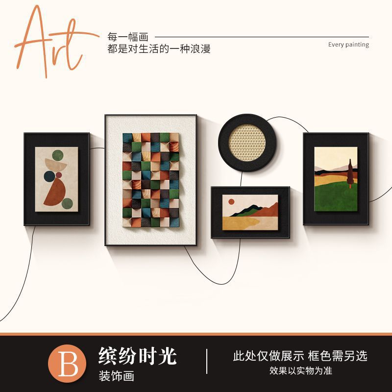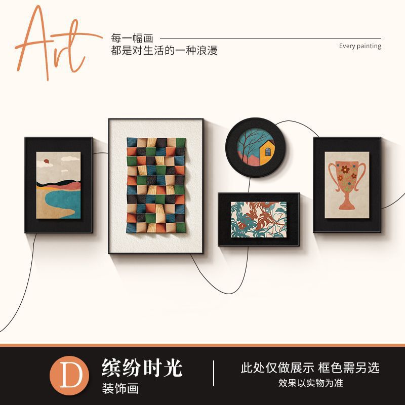 法式中古风客厅装饰画高级艺术组合壁画美拉德复古沙发背景墙挂画
