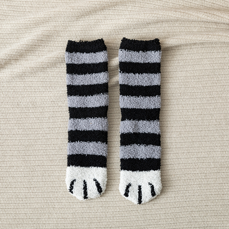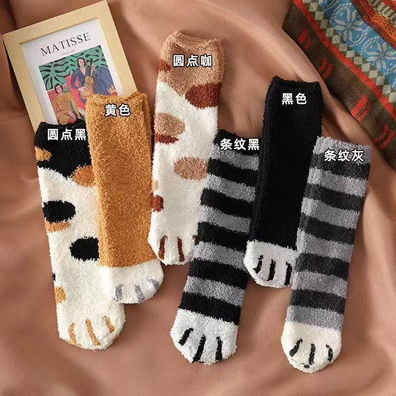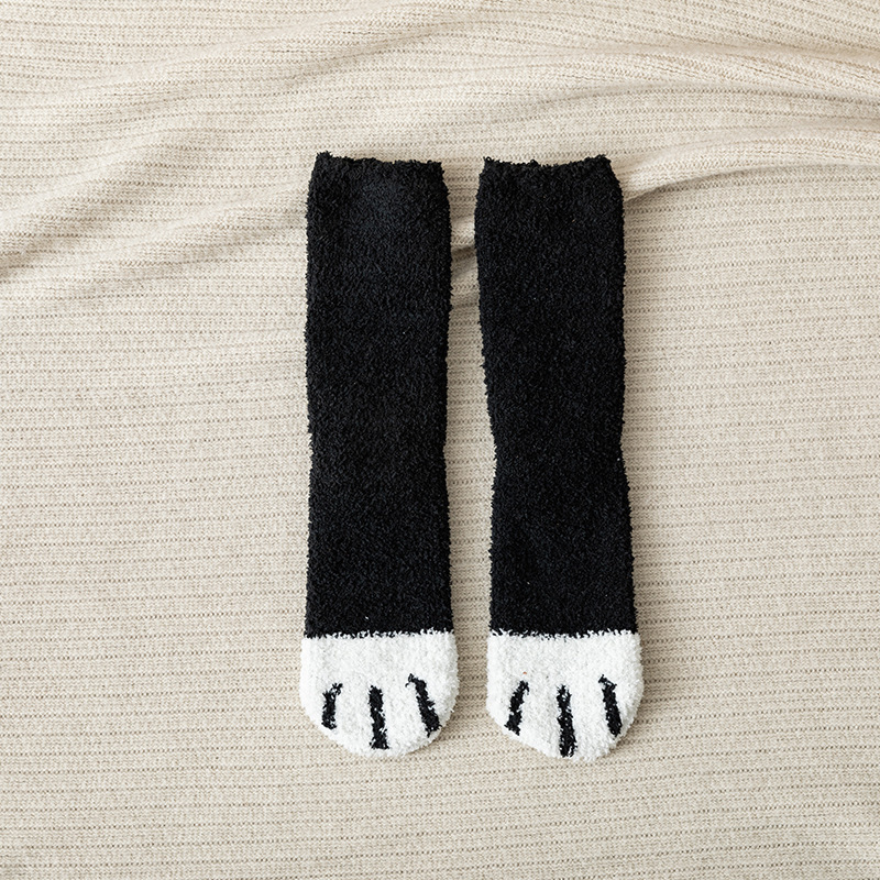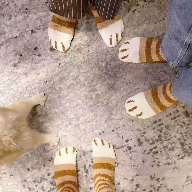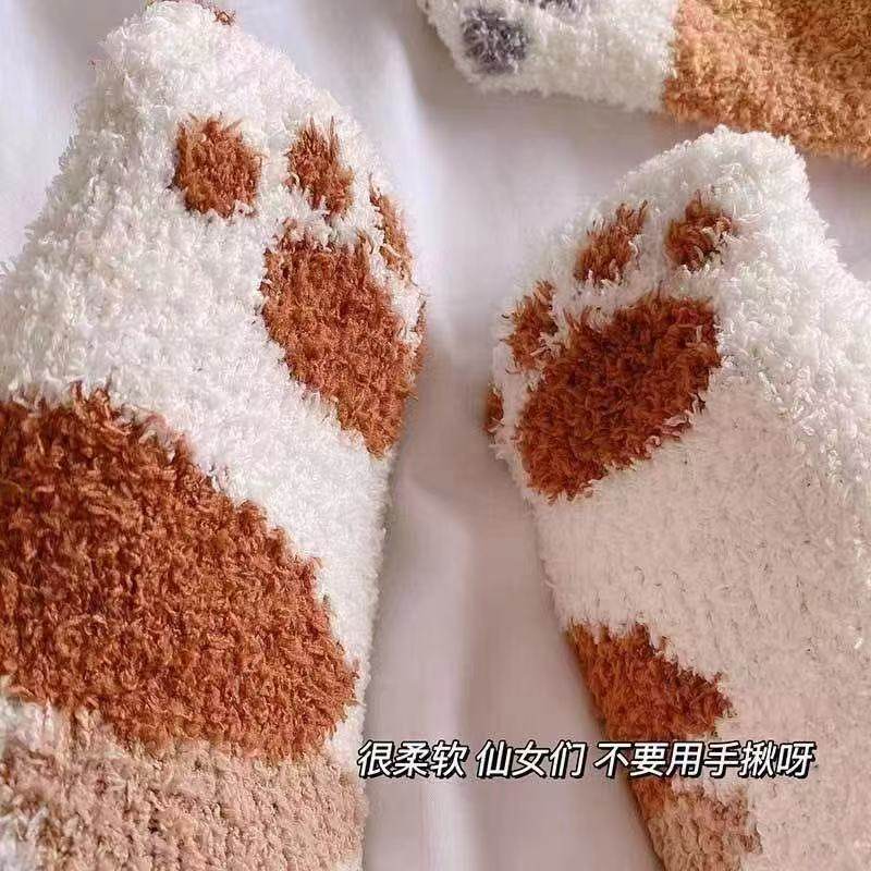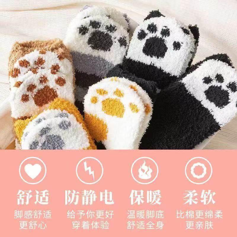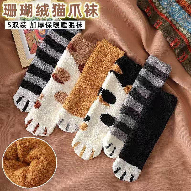 珊瑚绒月子袜子女秋冬加绒加厚居家袜睡眠毛绒保暖孕妇地板袜猫爪