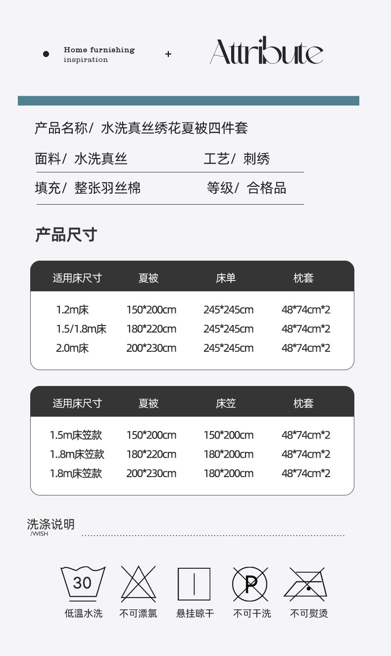 - 床笠款夏被四件套【180x220cm夏被+180x200cm床笠+一对枕套】