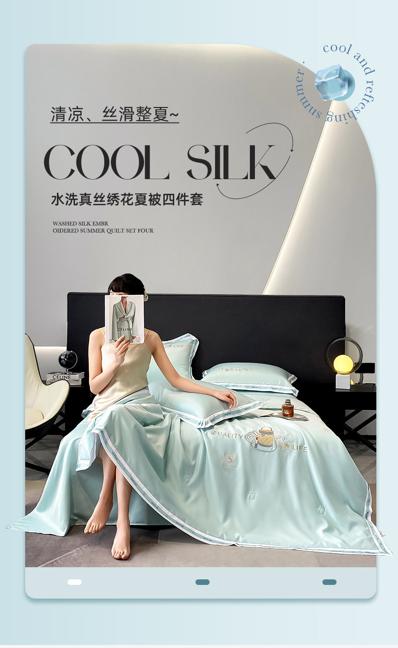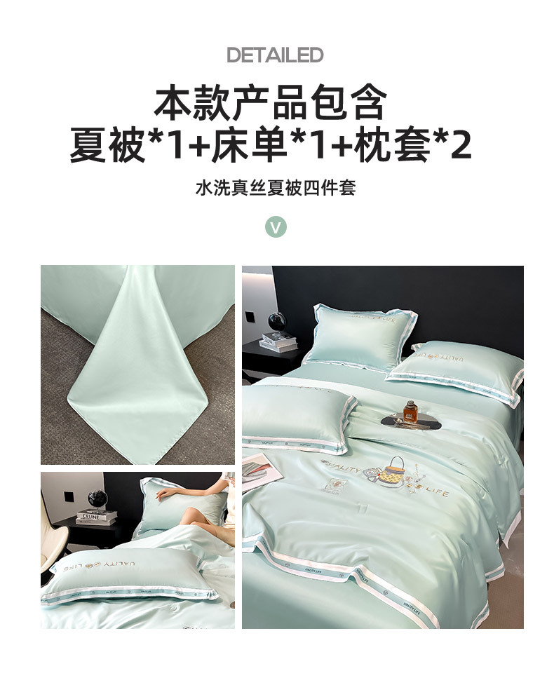 - 夏被四件套【200x230cm夏被+床单+一对枕套】