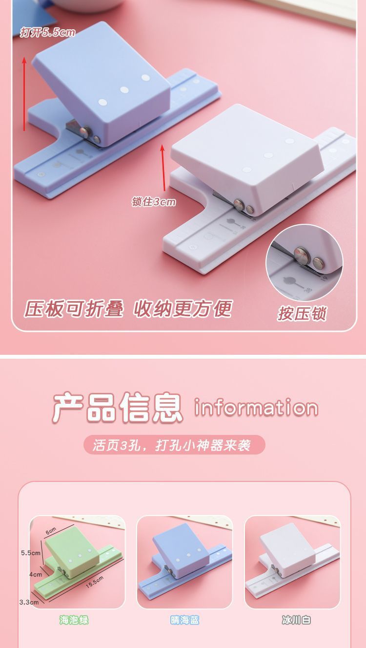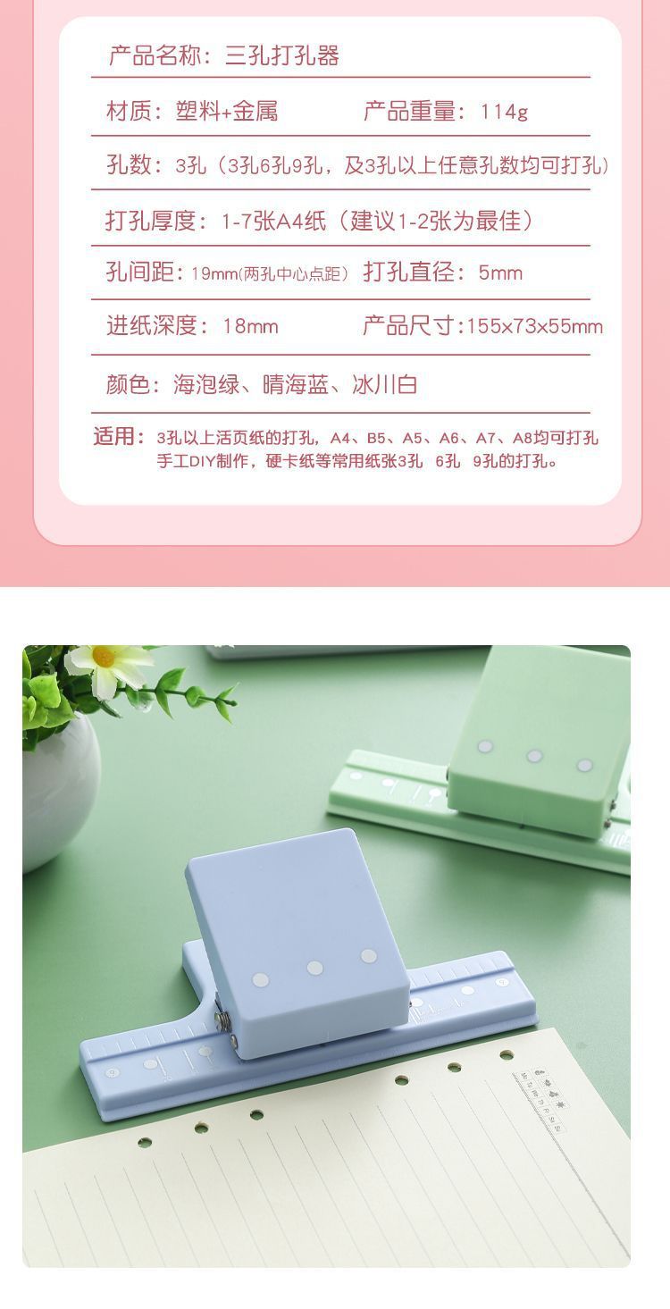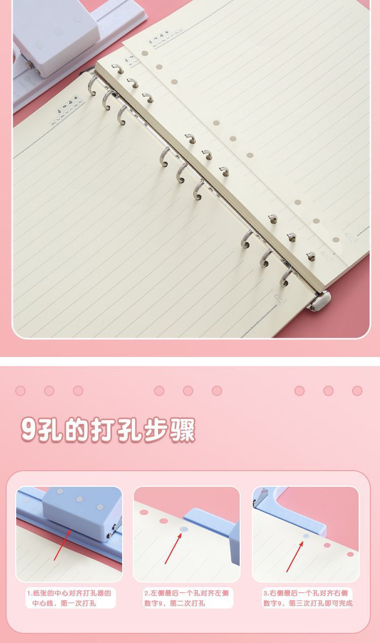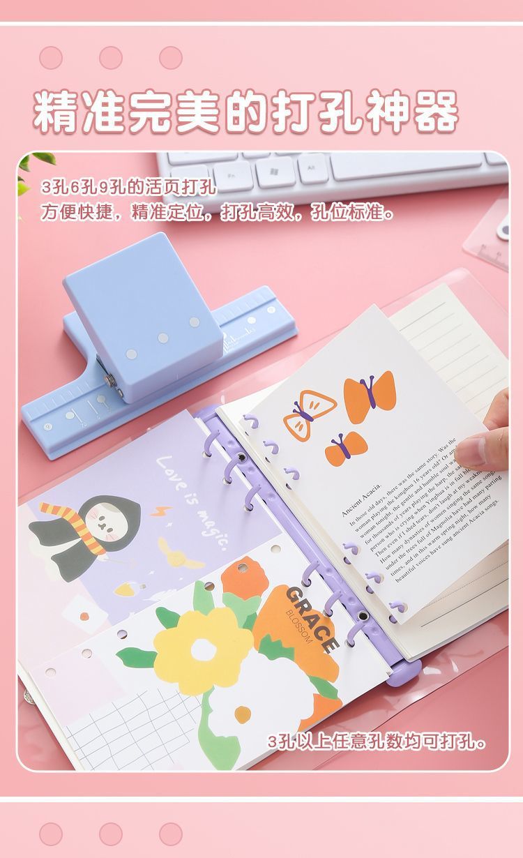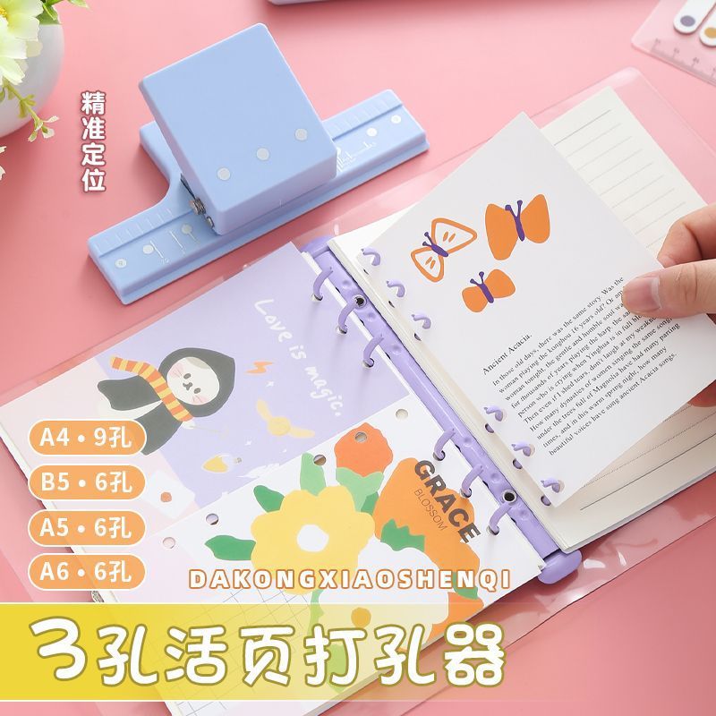 3孔打孔机新款5孔打孔器辅助器多孔活页装订活页本定位打孔活页夹