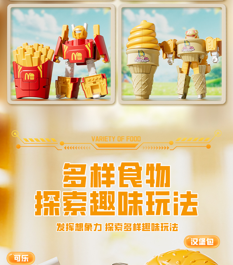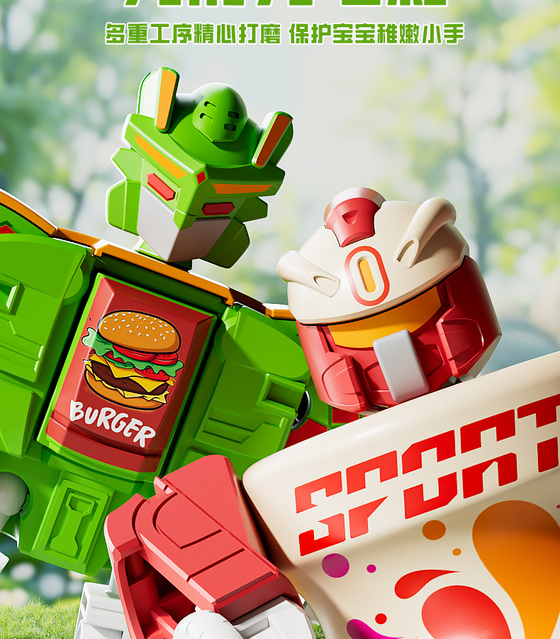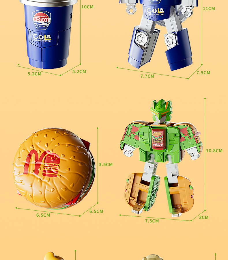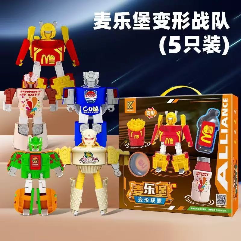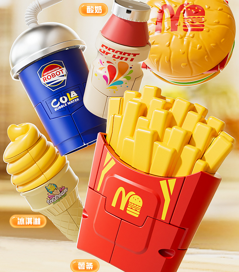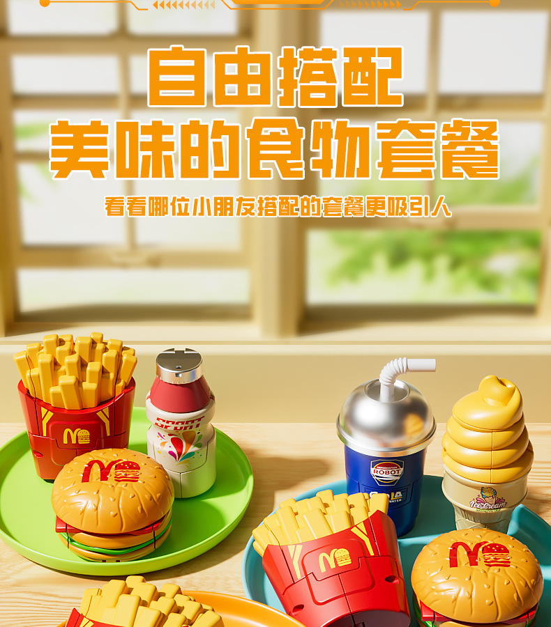 儿童变形机器人玩具饮料汉堡薯条模型儿童趣味过家家3岁6男孩礼物