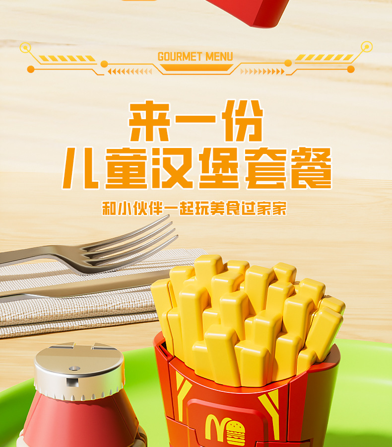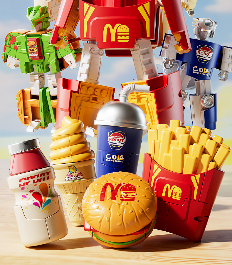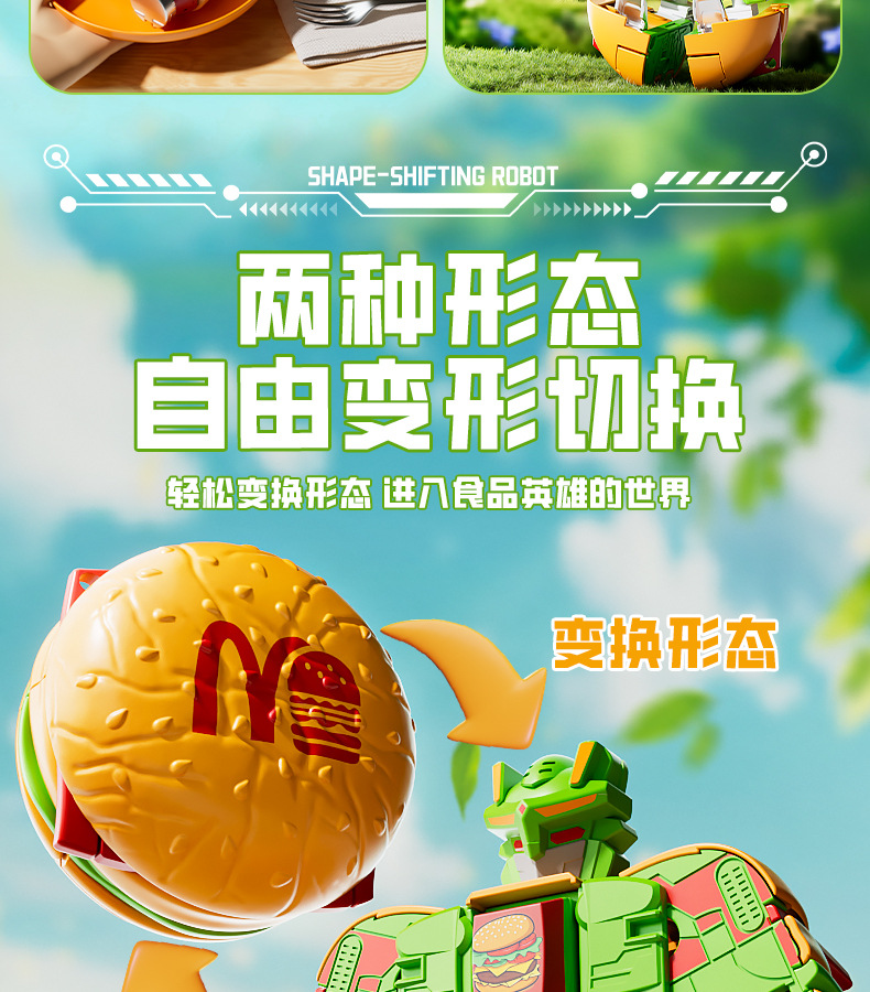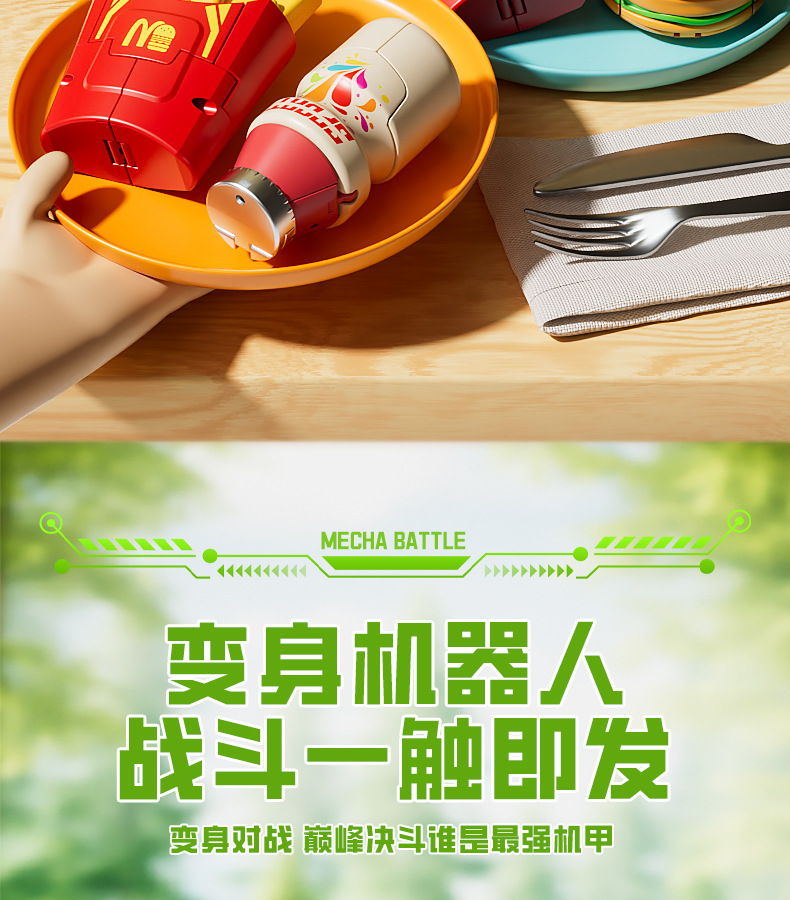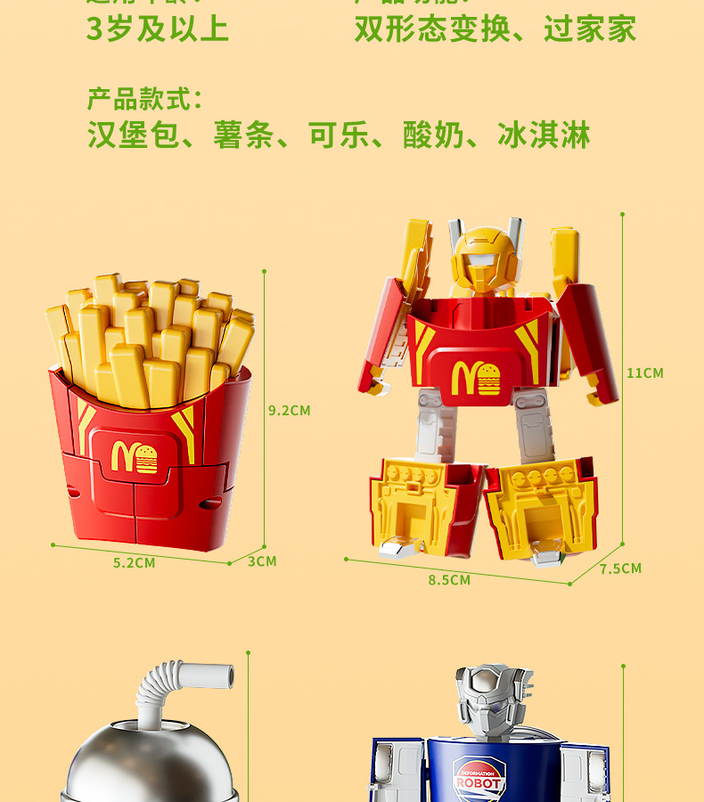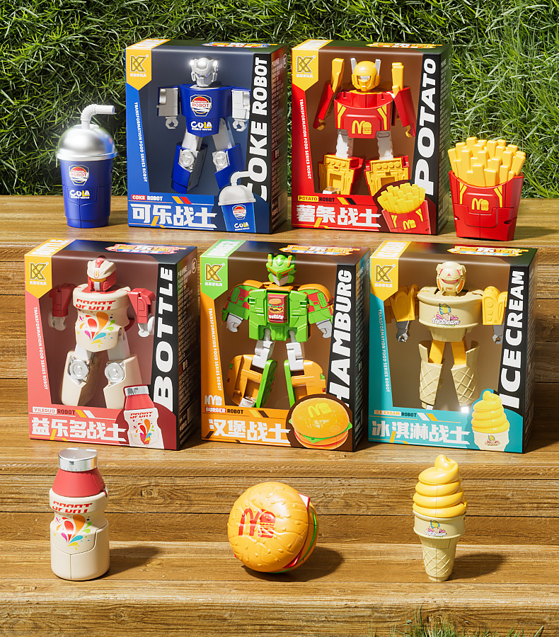 儿童变形机器人玩具饮料汉堡薯条模型儿童趣味过家家3岁6男孩礼物