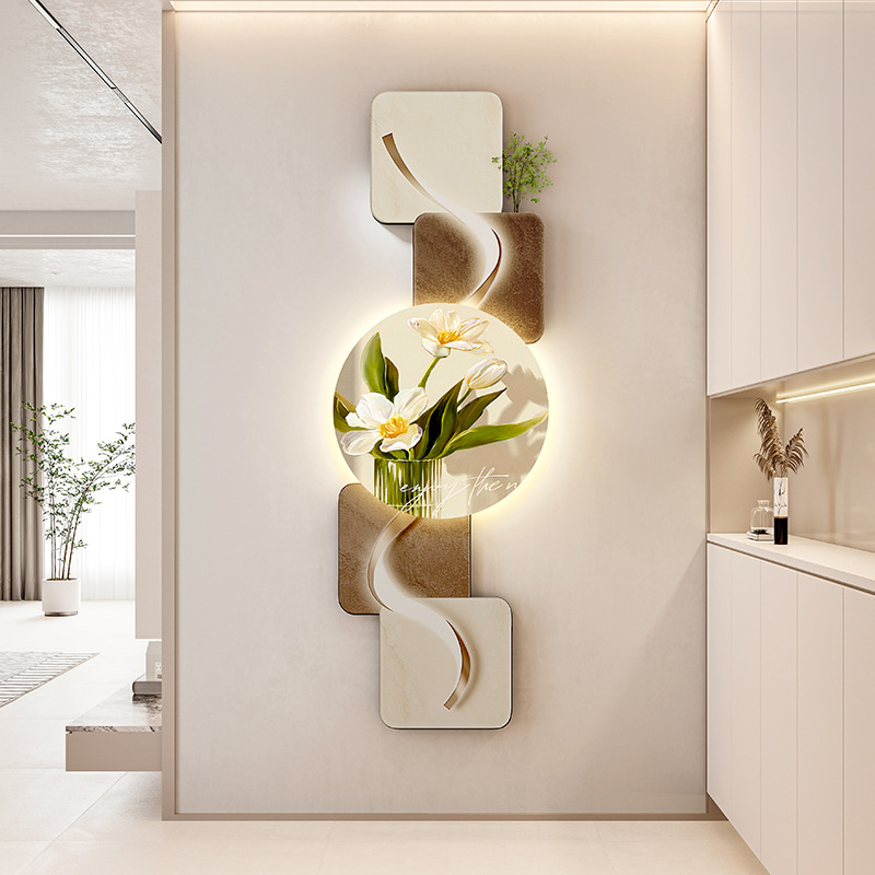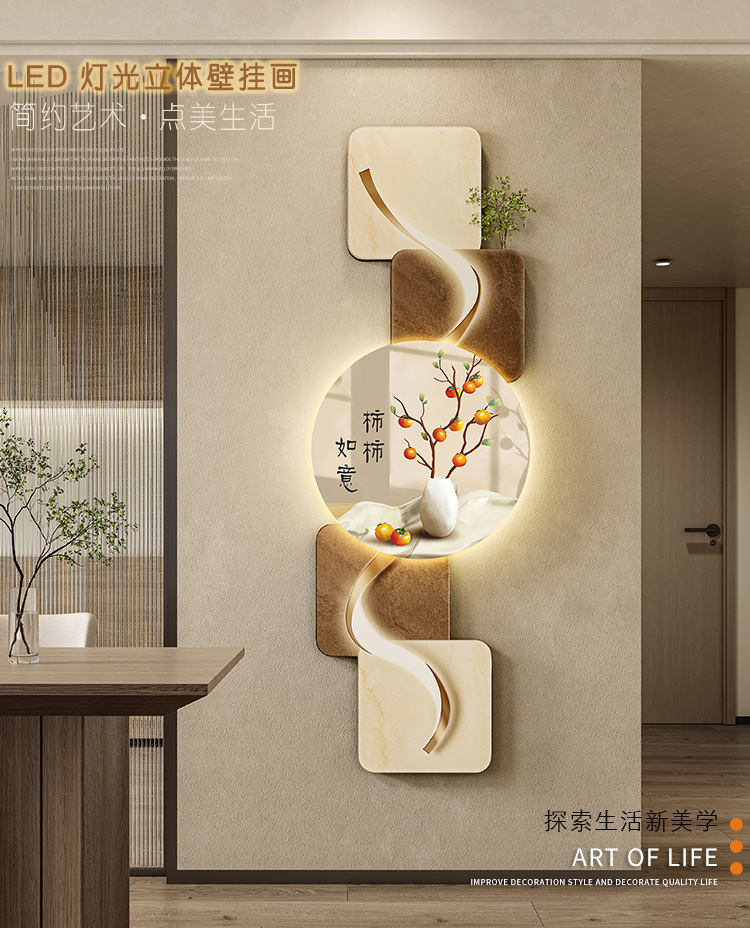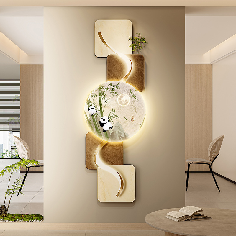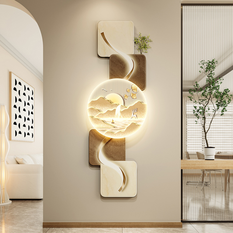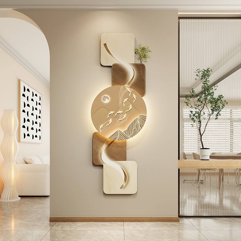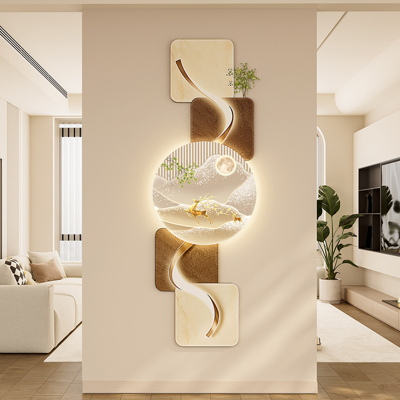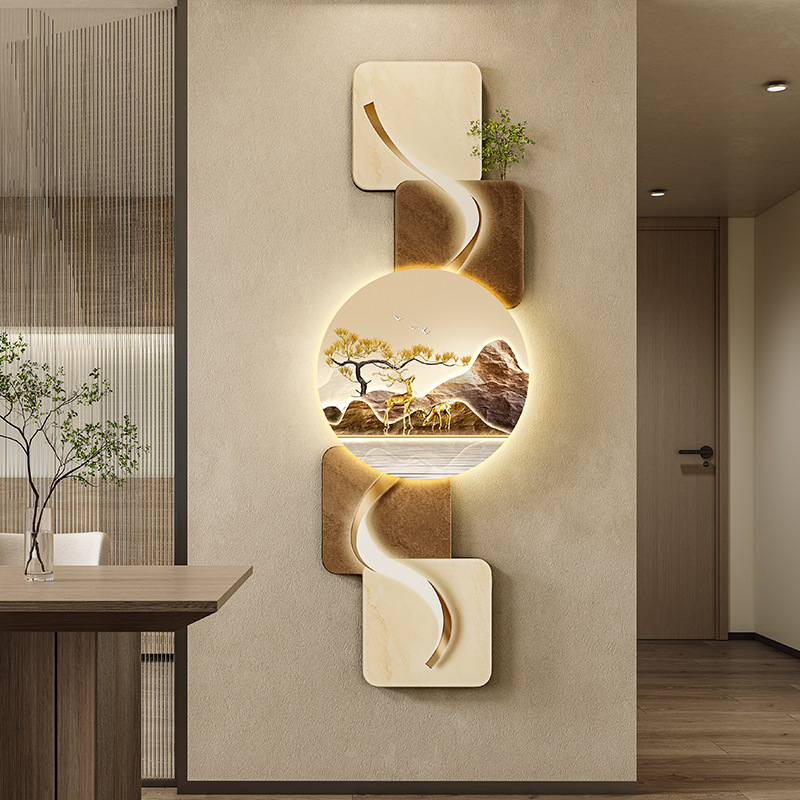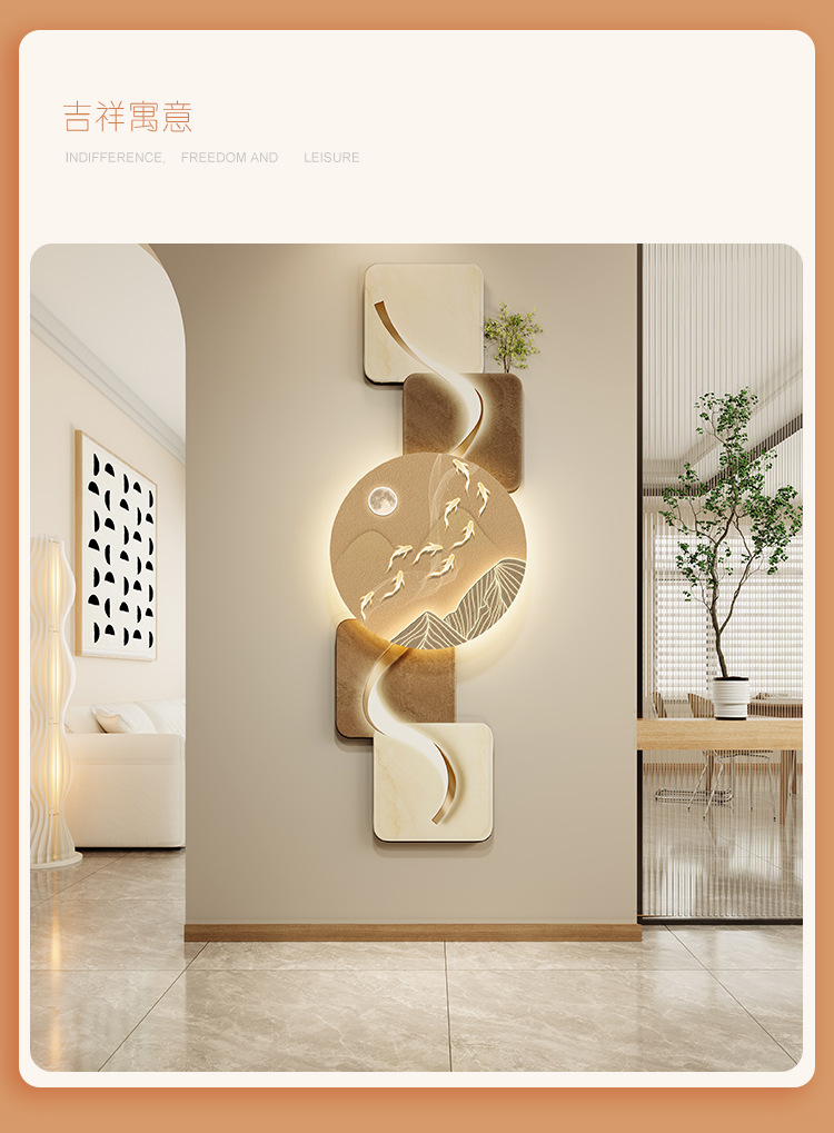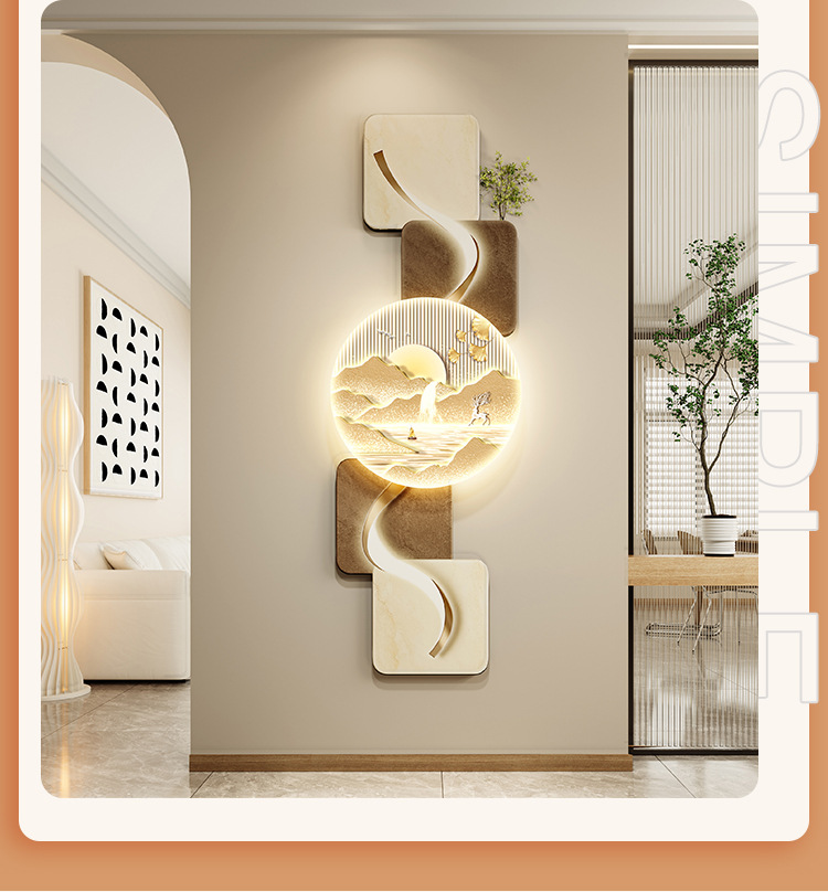 玄关客厅装饰画LED灯横幅沙发背景墙侘寂风高级感创意挂画