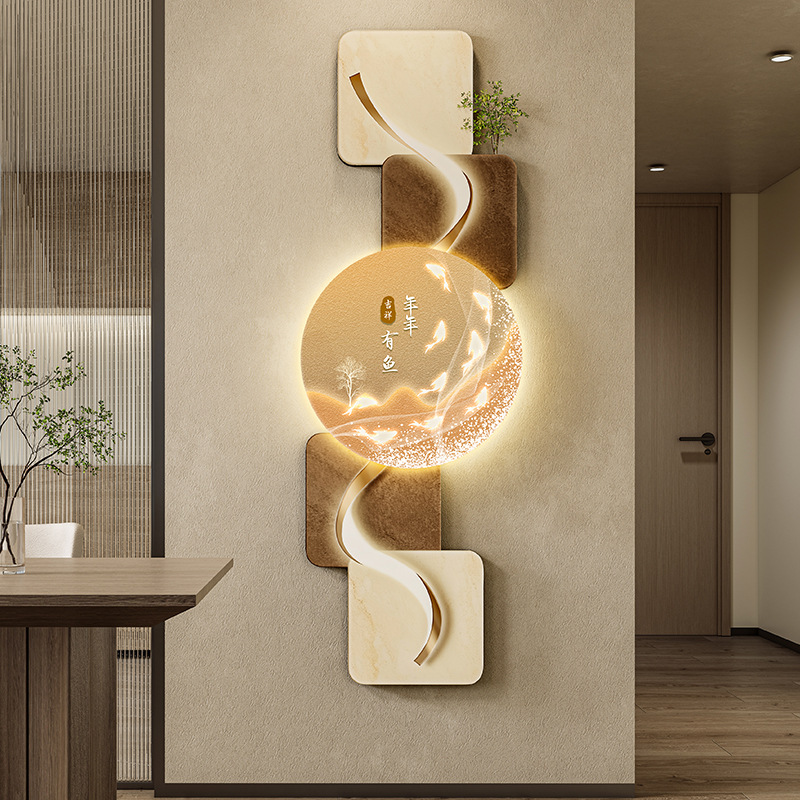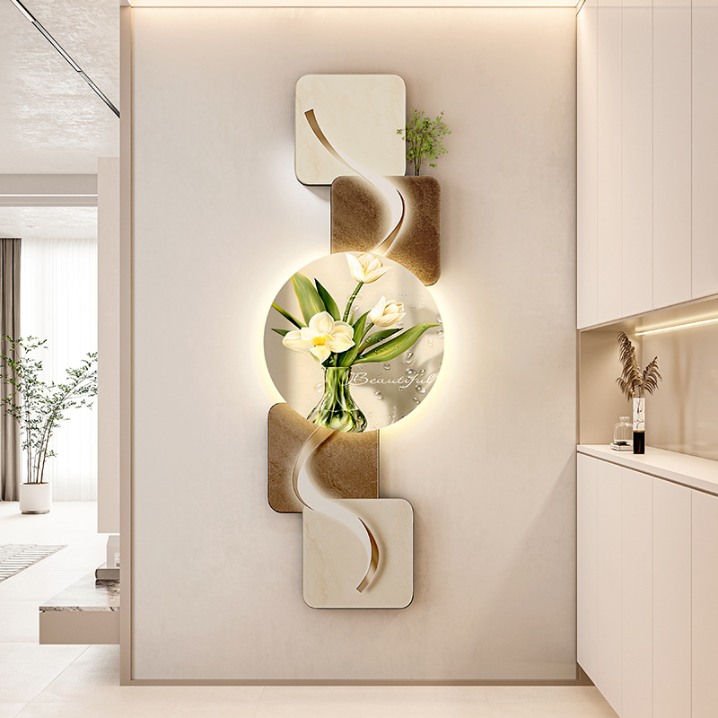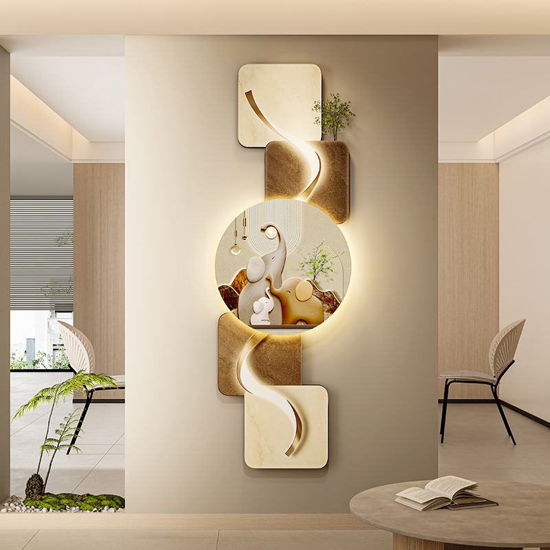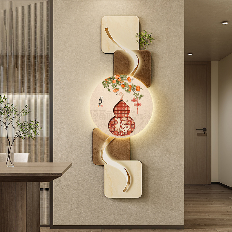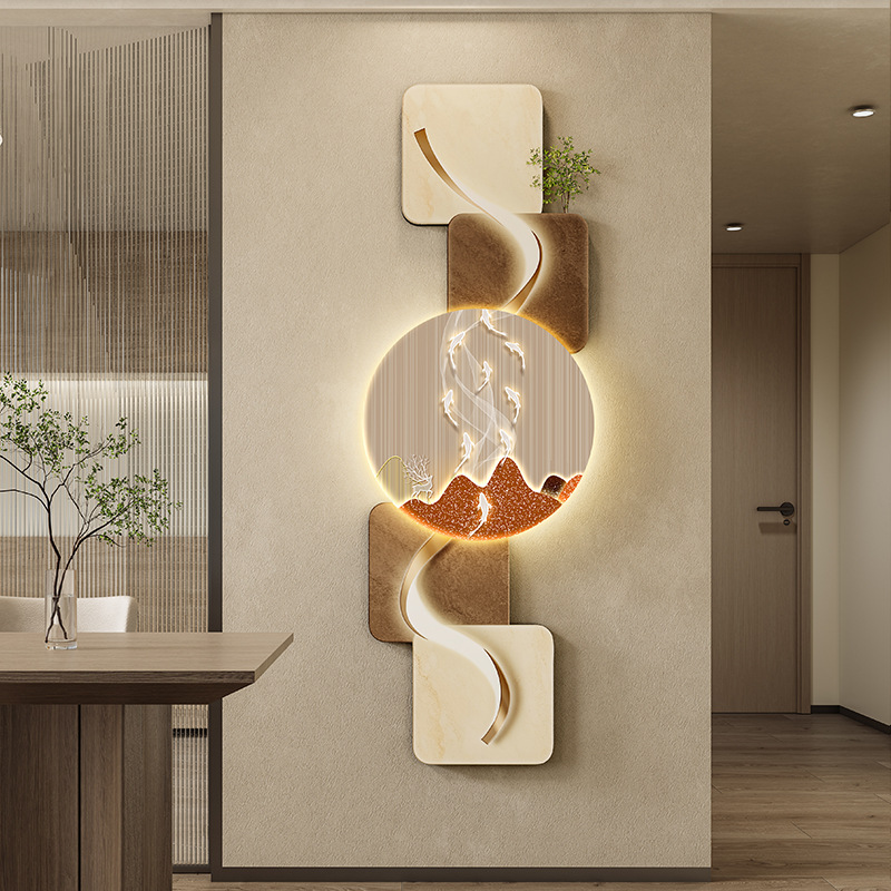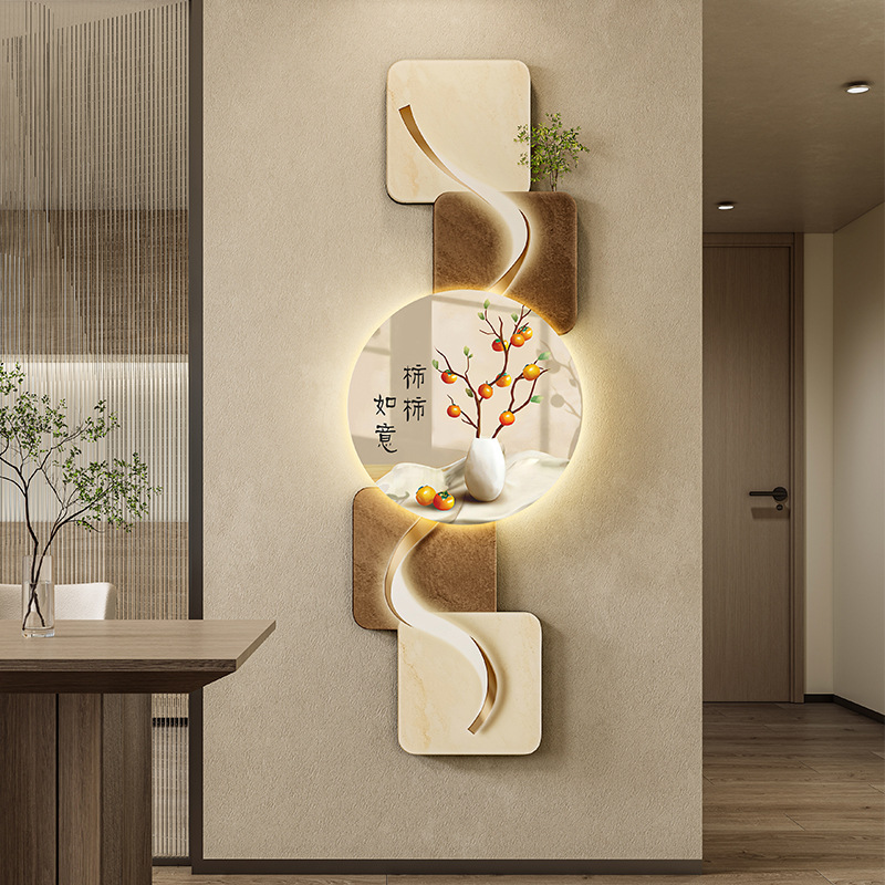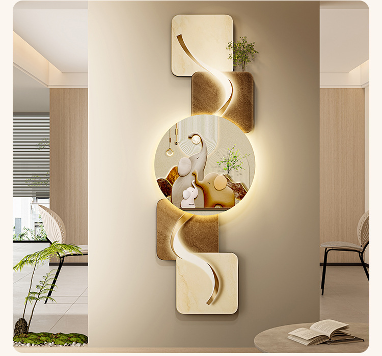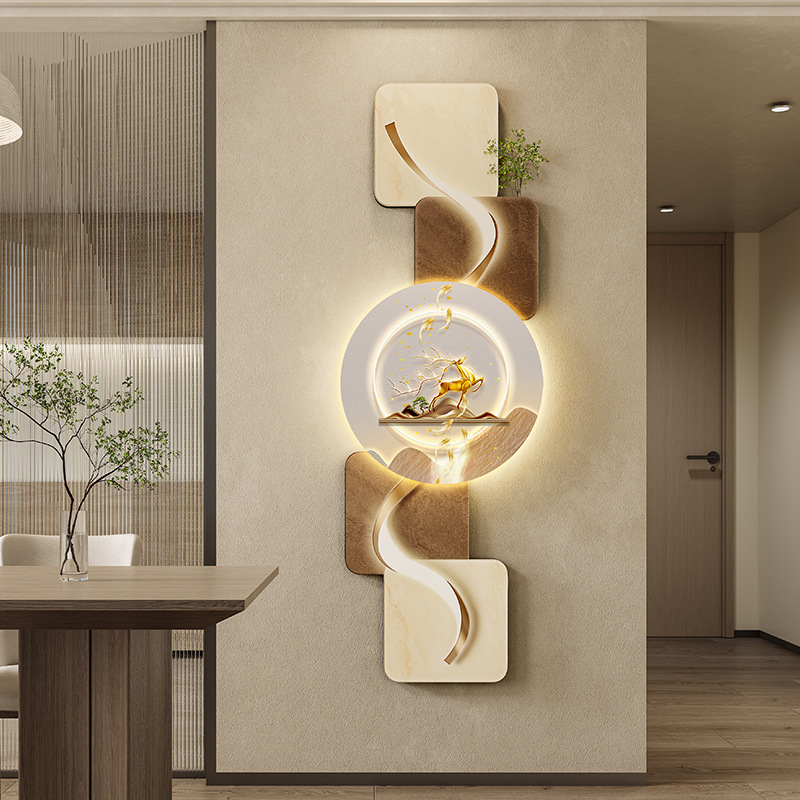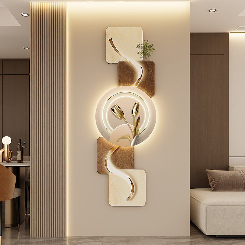玄关客厅装饰画LED灯横幅沙发背景墙侘寂风高级感创意挂画