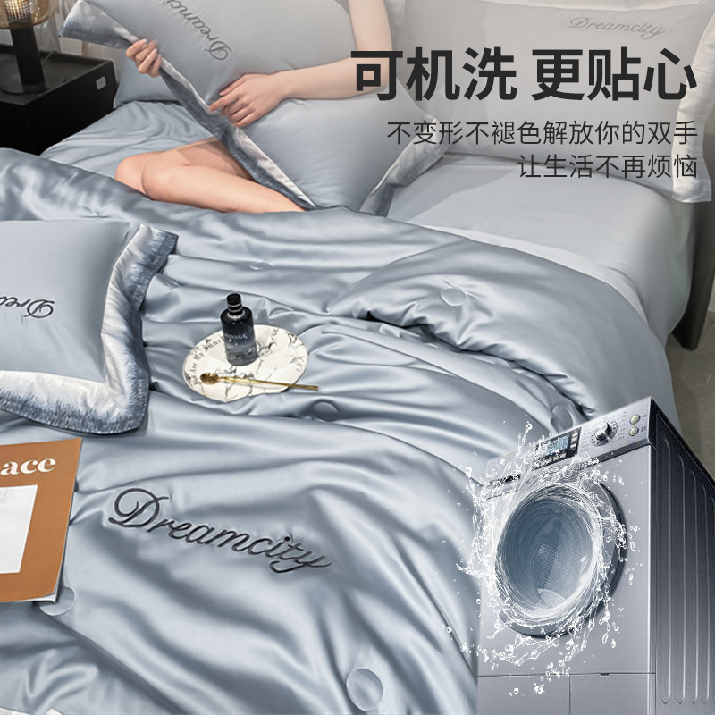 2025新款冰丝夏凉被四件套可机洗水洗夏被空调被夏季薄款被子被芯