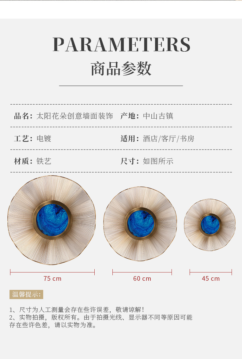 轻奢太阳花朵墙面装饰挂件客厅壁挂沙发电视背景墙壁金属墙上挂饰
