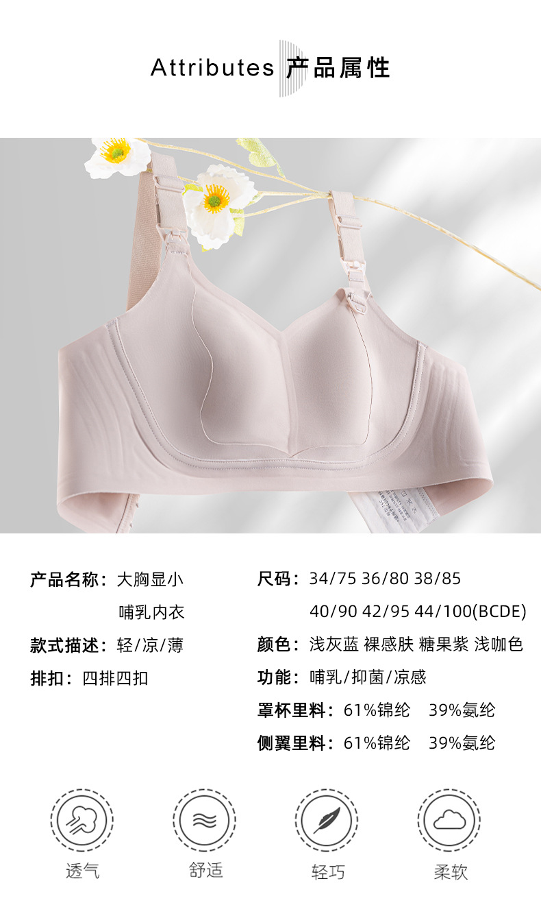 哺乳内衣双重提拉聚拢无钢圈哺乳文胸上开扣孕期哺乳期孕妇内衣