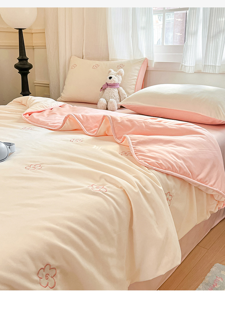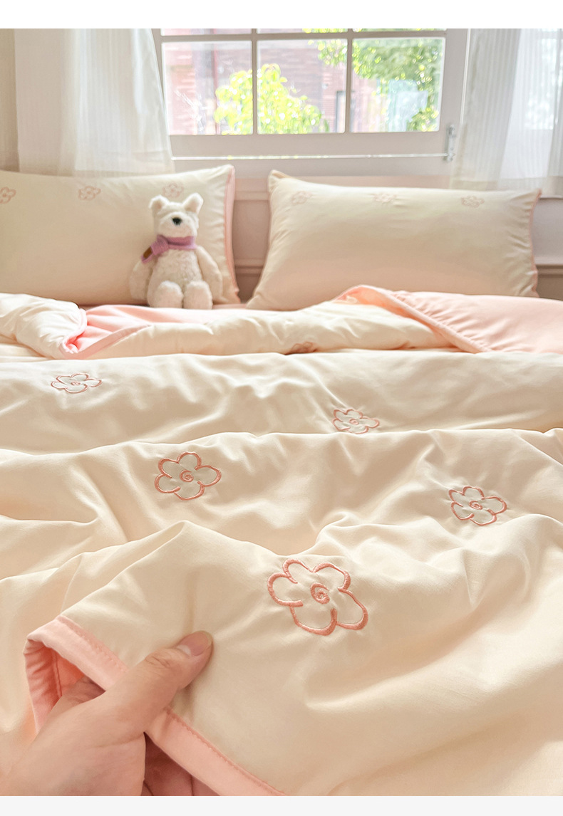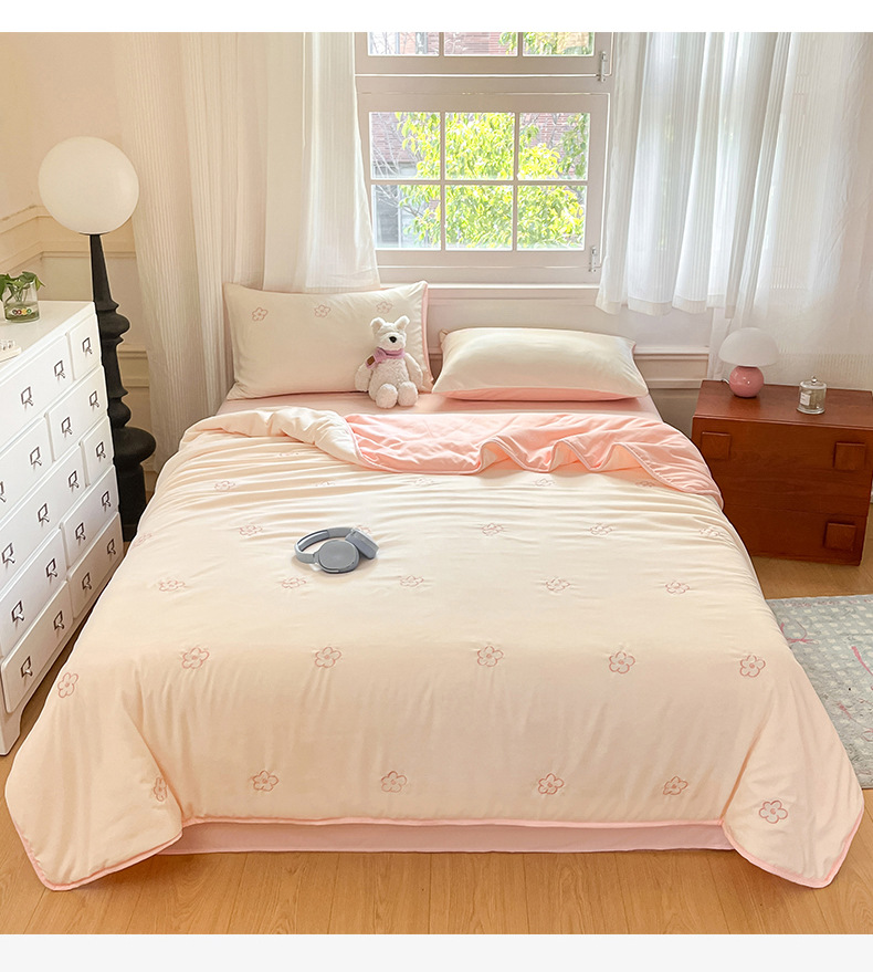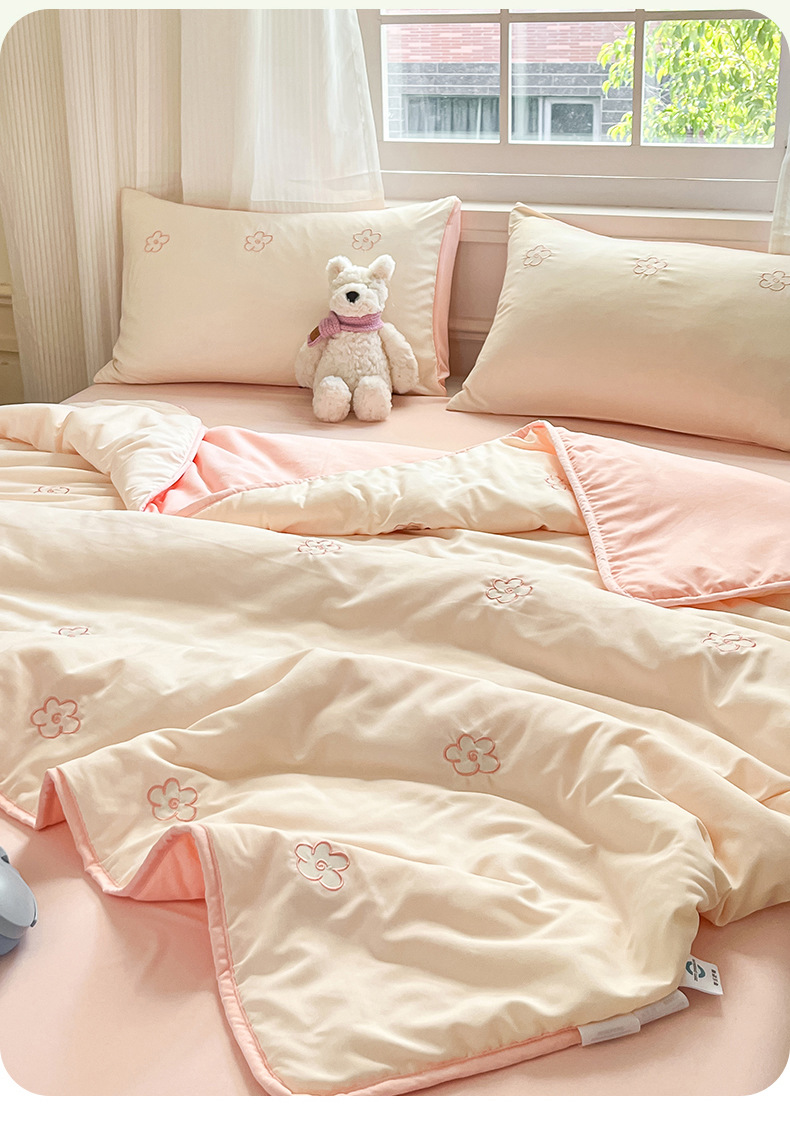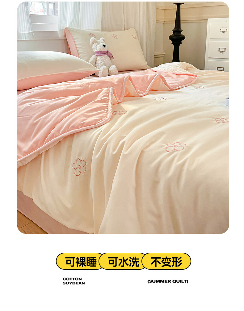新款水洗棉刺绣夏被夏凉被宿舍单双人可机水洗薄款被子空调被
