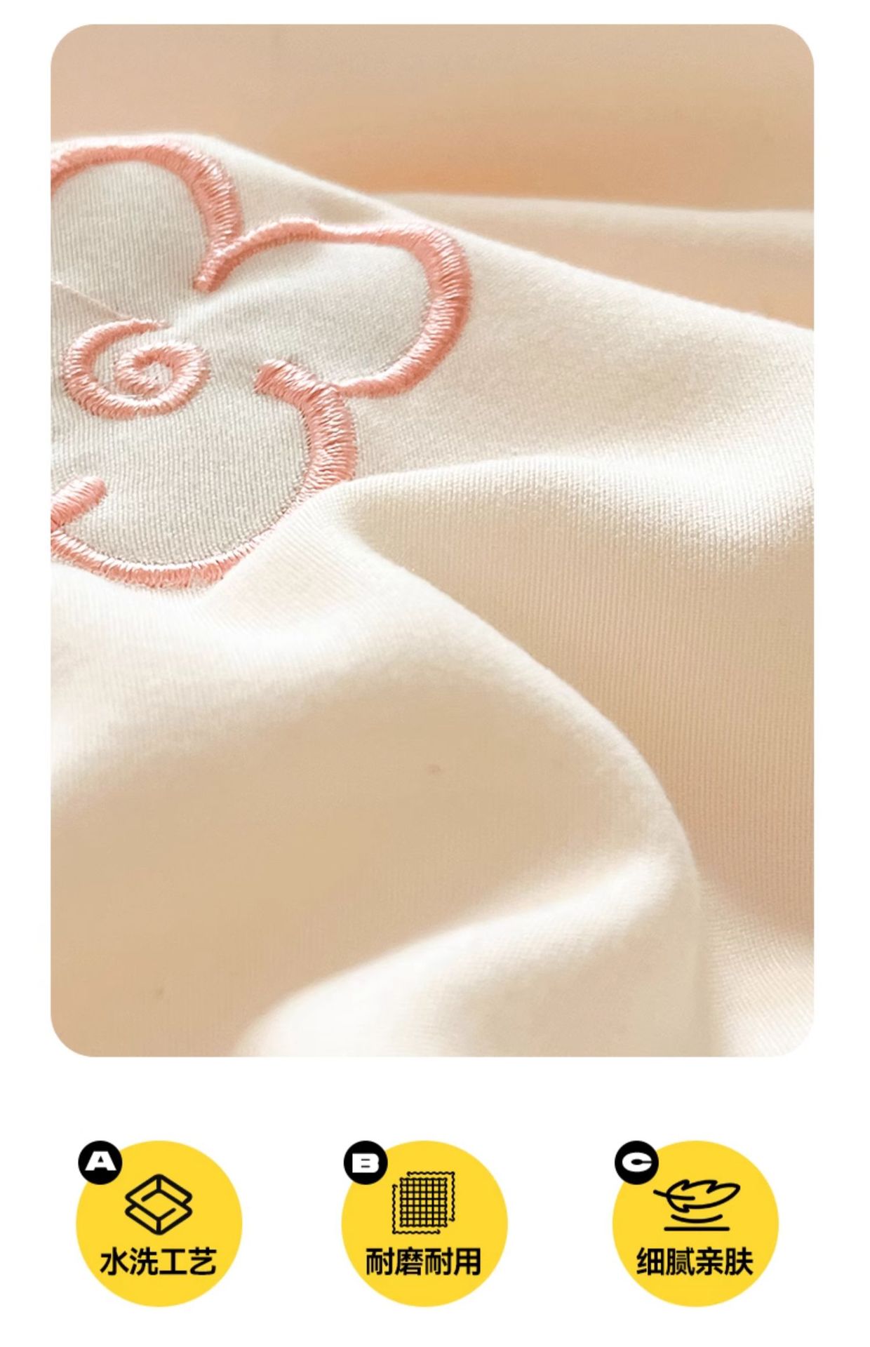 - 刺绣-奶昔白花朵【亲肤水洗棉柔软细腻宝宝级可裸睡】