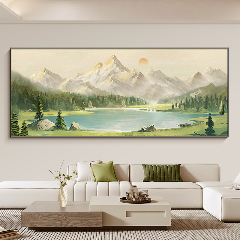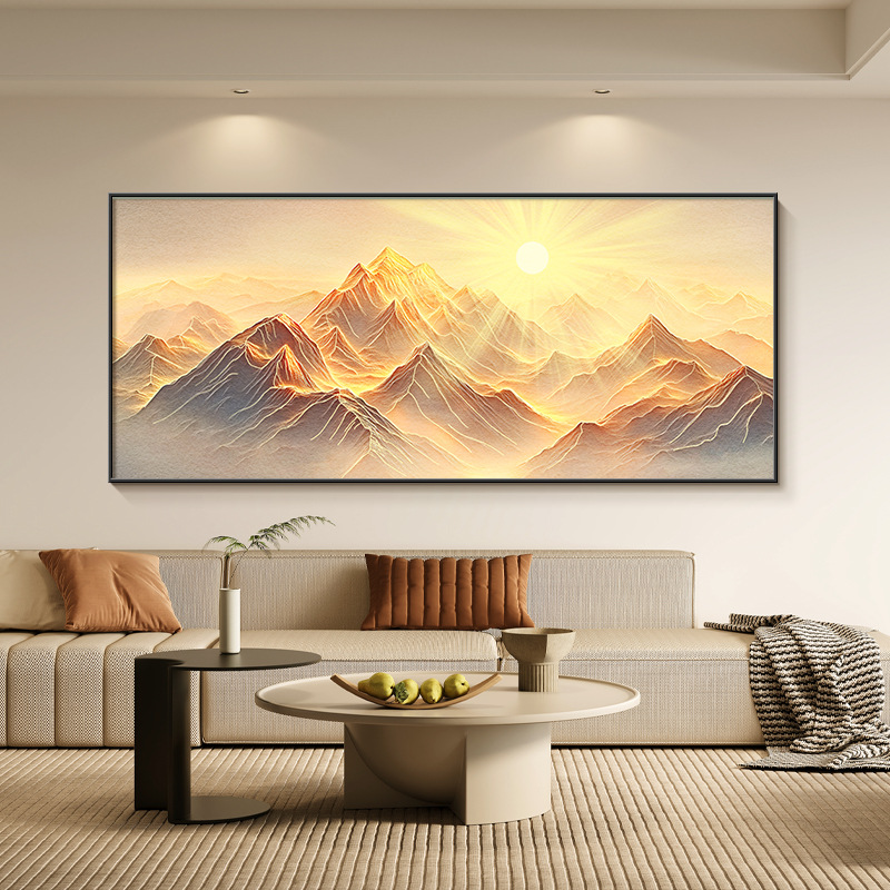 日照金山客厅装饰画办公室沙发背景墙餐厅挂画轻奢高级感卧室壁画