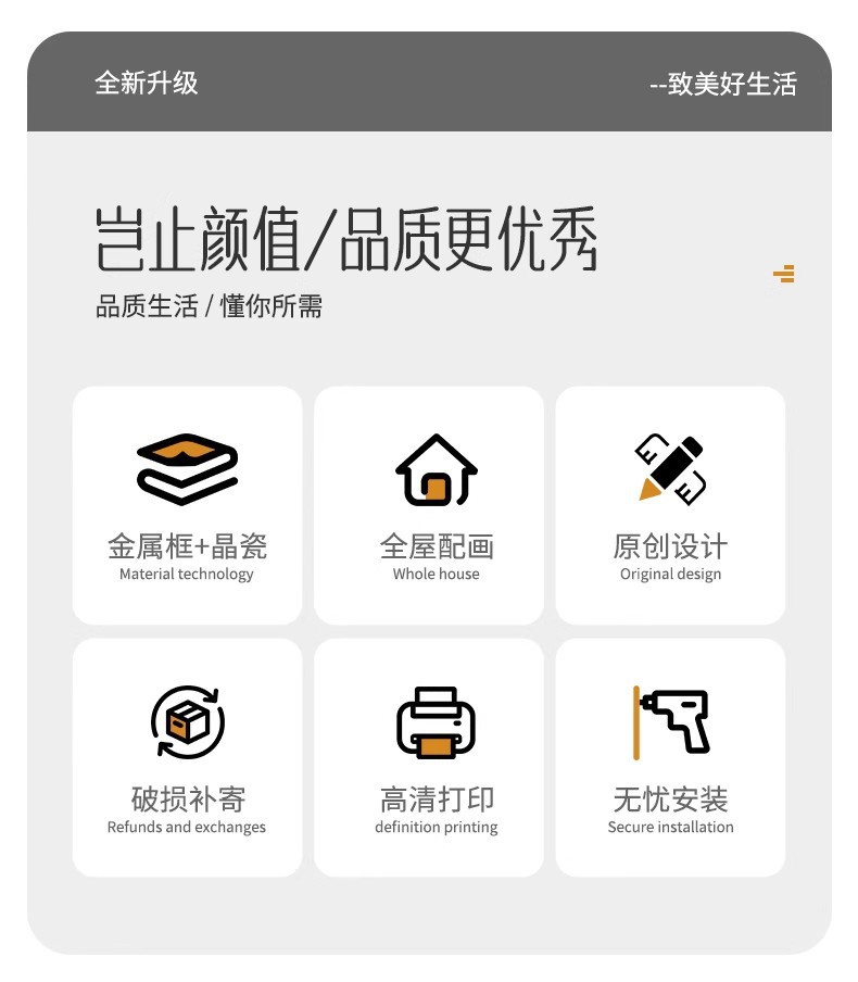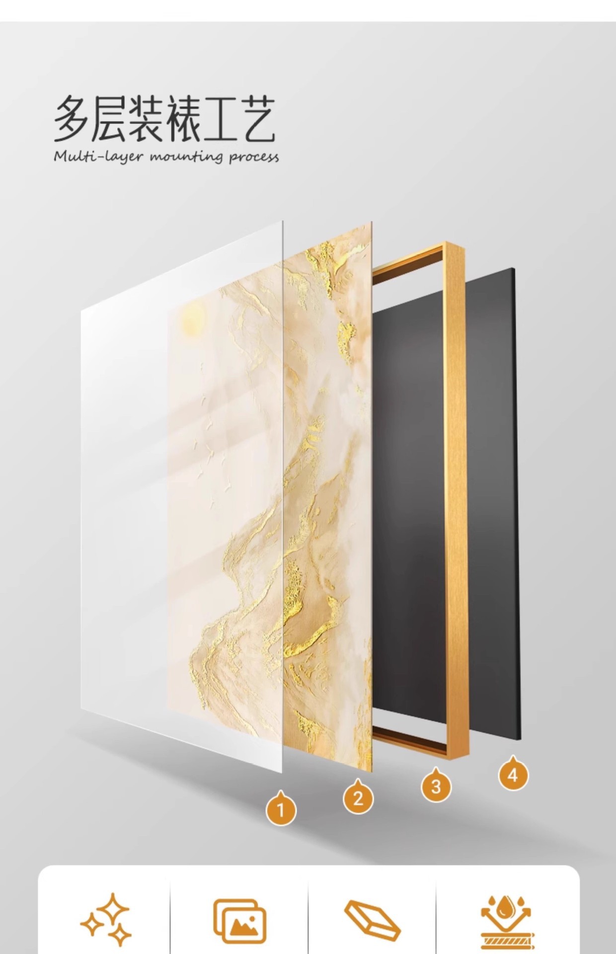 - 180*60cm亮光/晶瓷画+铝合金画框