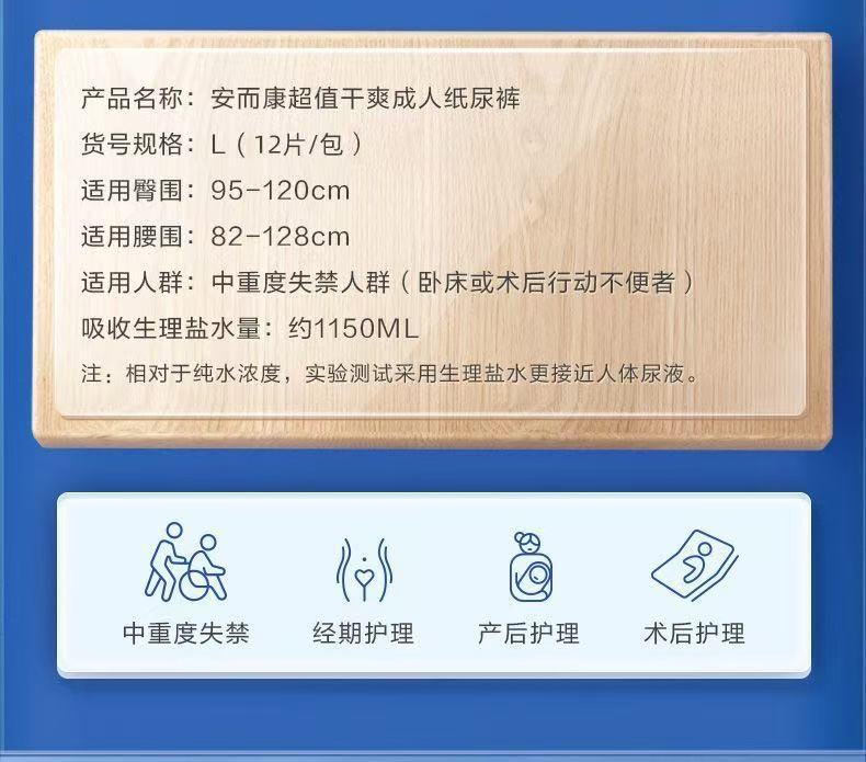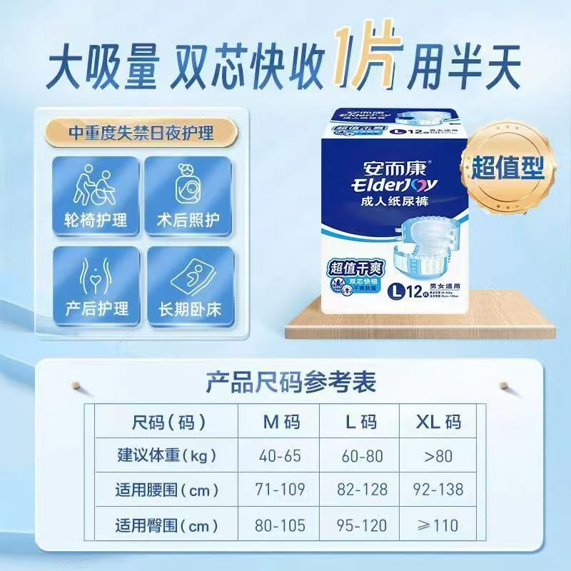 安而康干爽成人纸尿裤老人护理尿不湿M/L/大码防漏安尔康成人专用