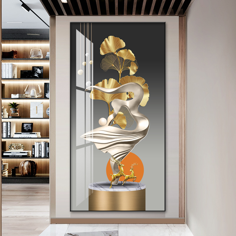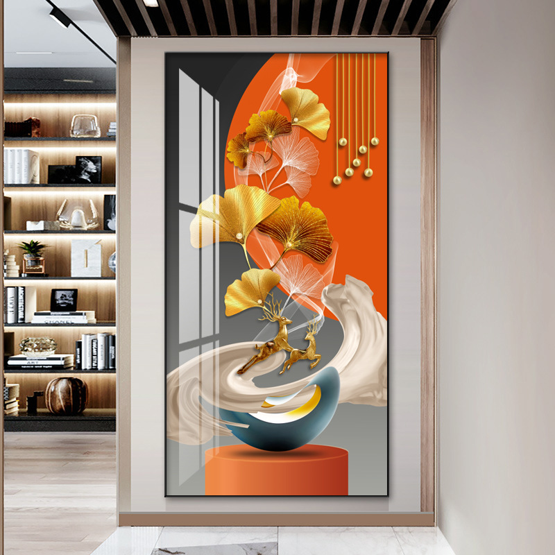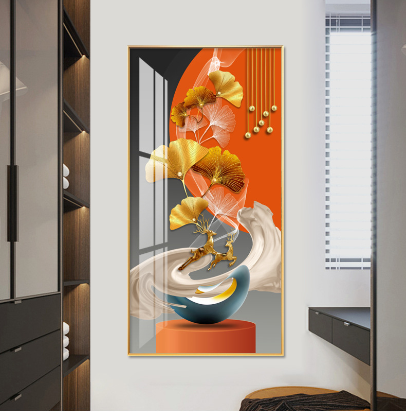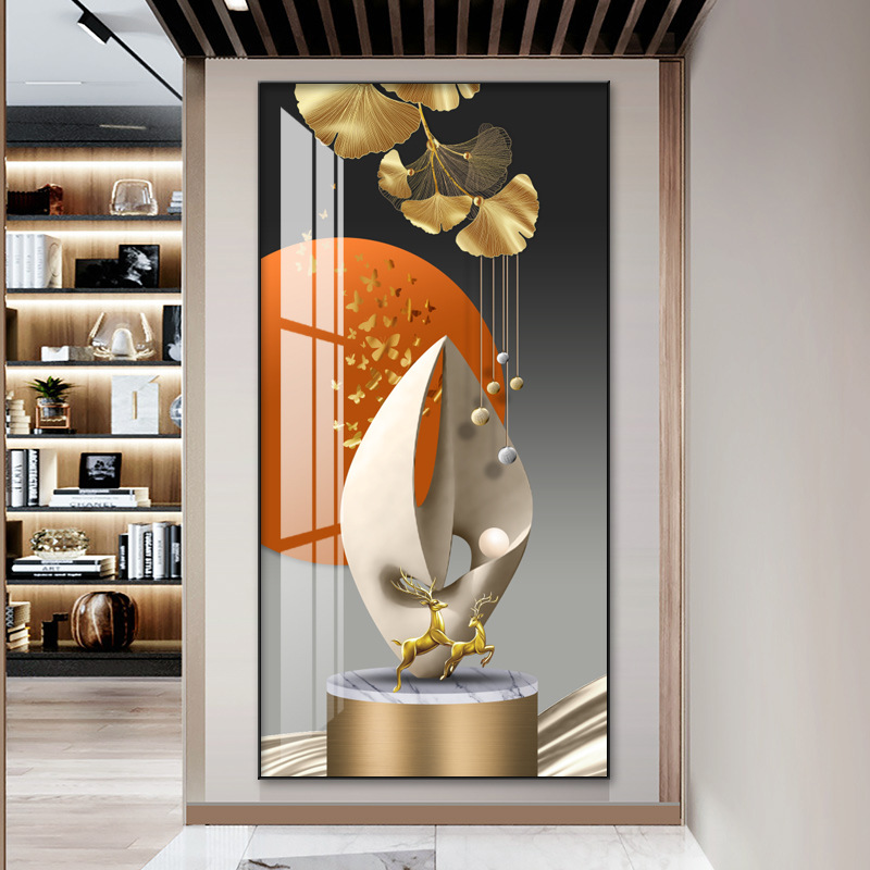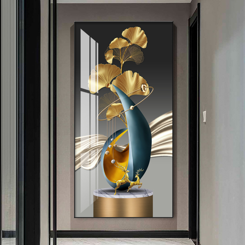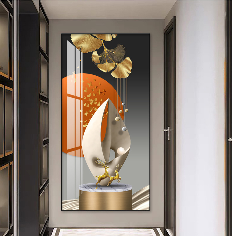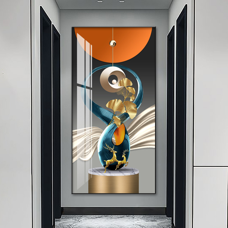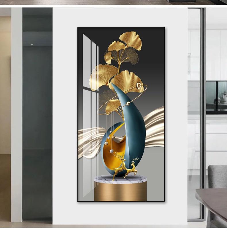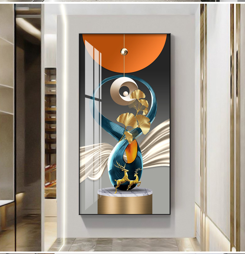 玄关入户装饰画现代简约背景墙竖版壁画客厅轻奢走廊过道晶瓷挂画