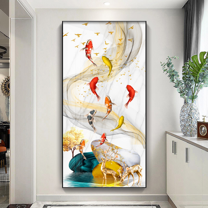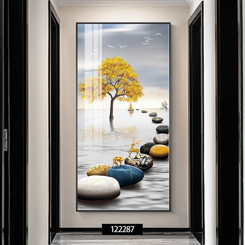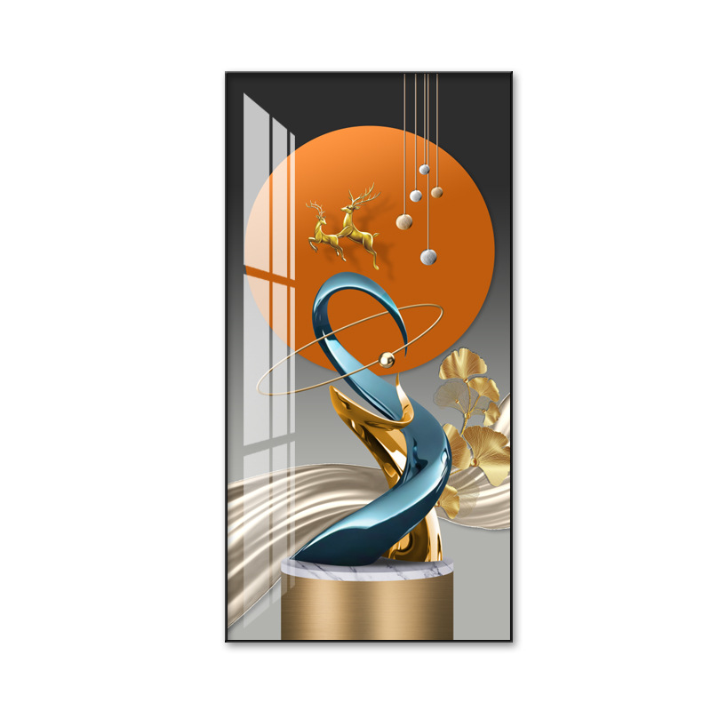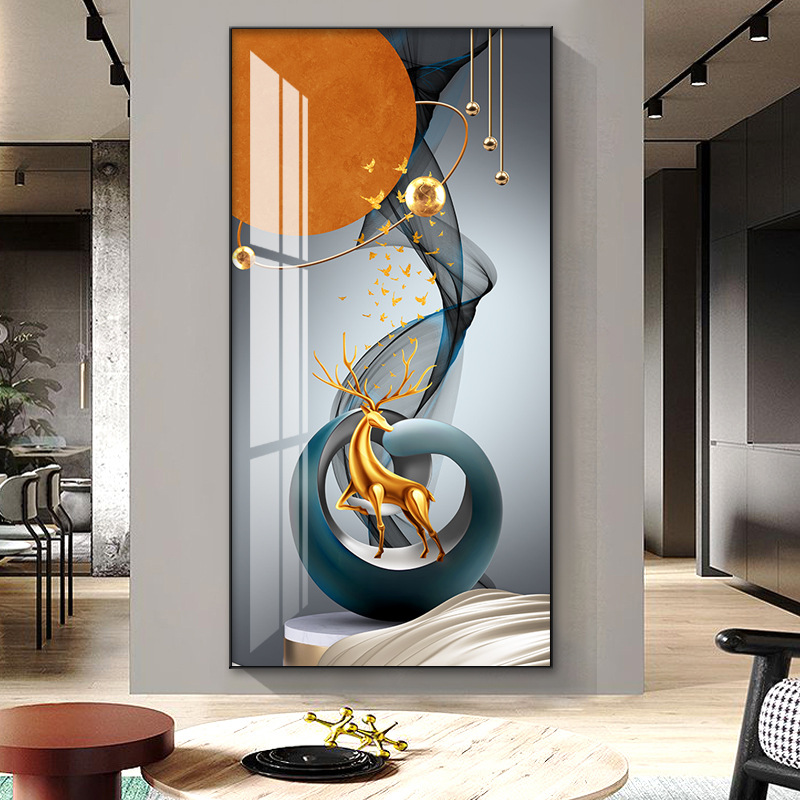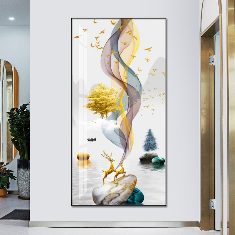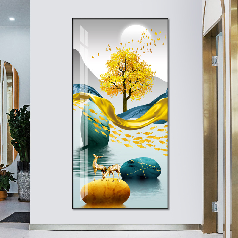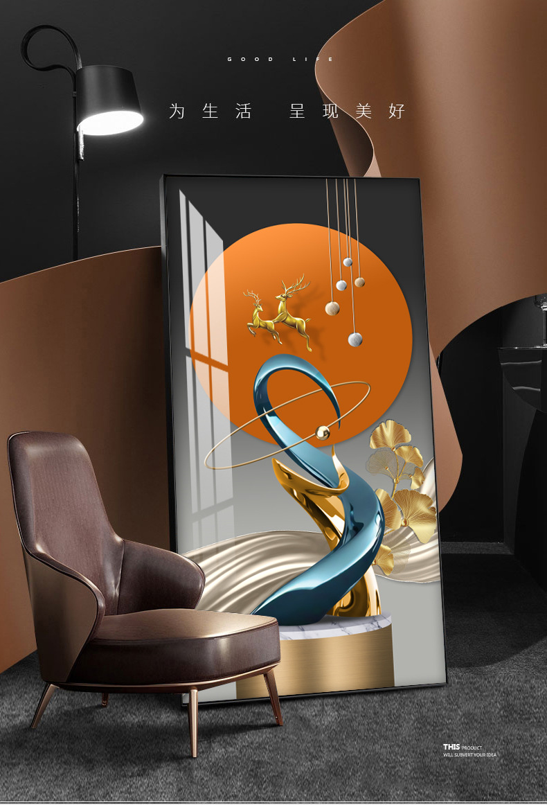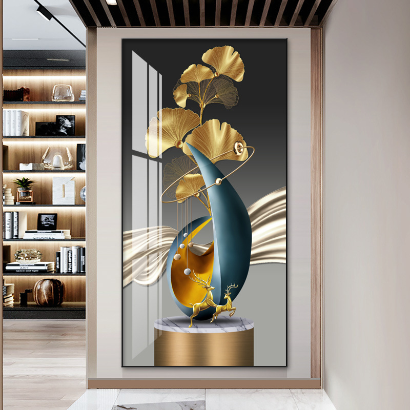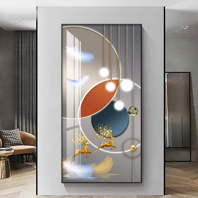 玄关入户装饰画现代简约背景墙竖版壁画客厅轻奢走廊过道晶瓷挂画