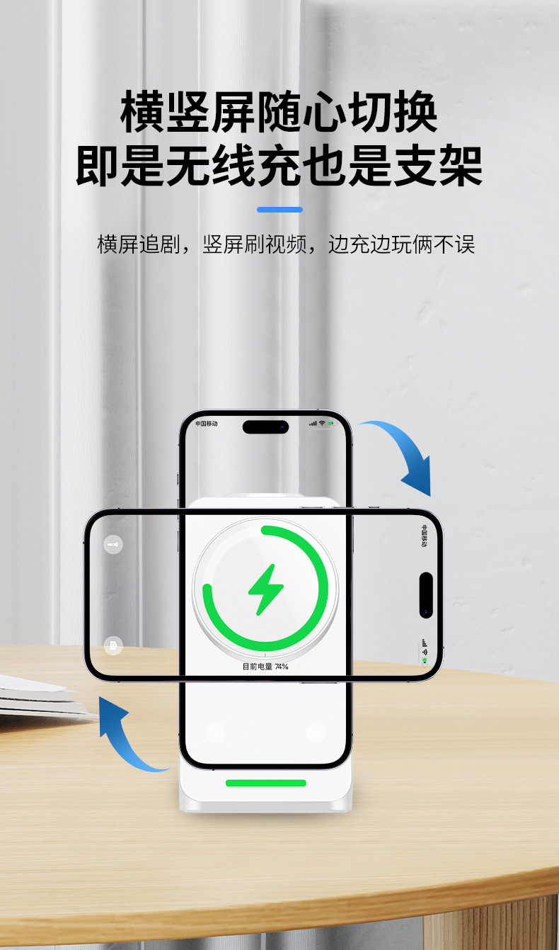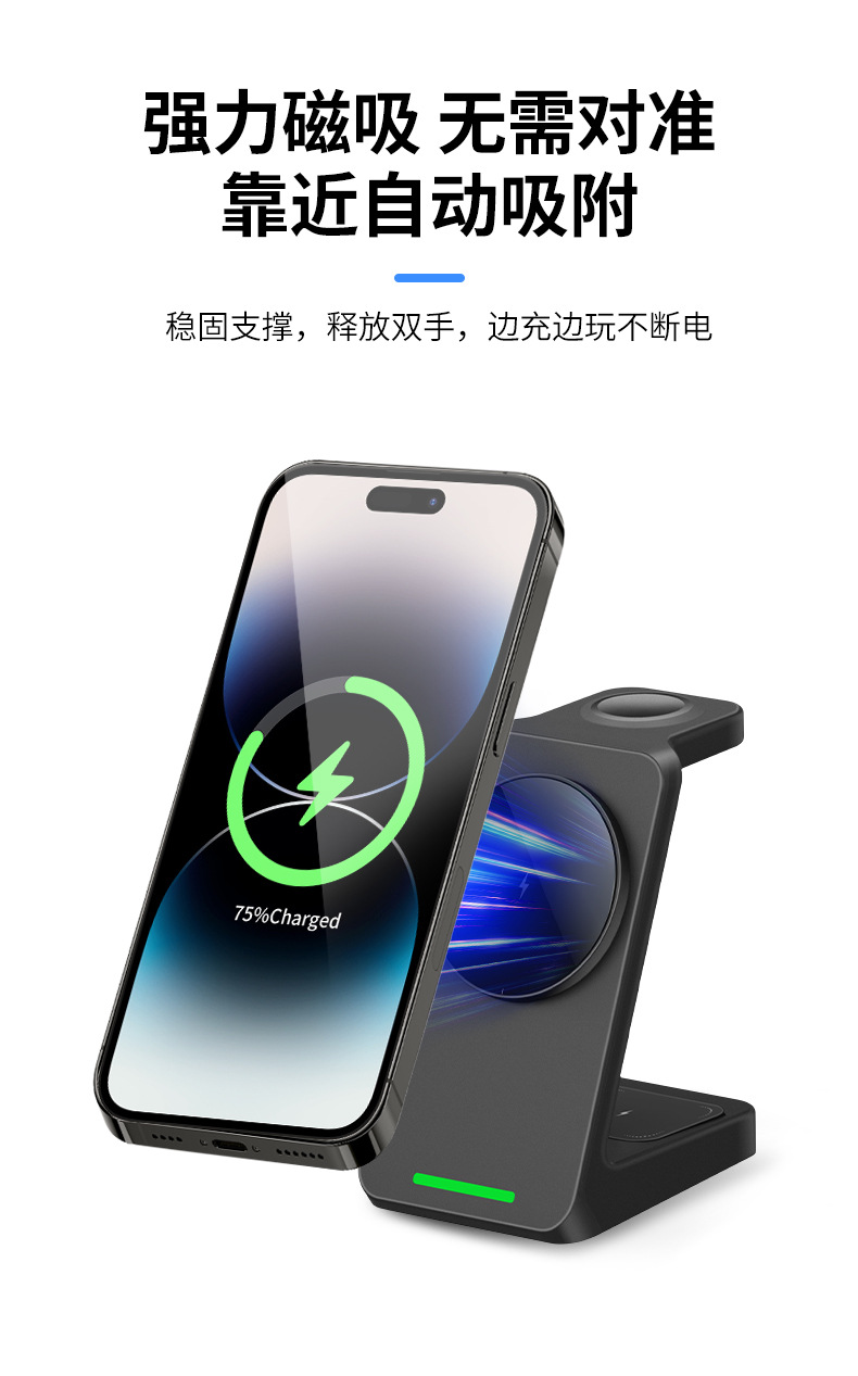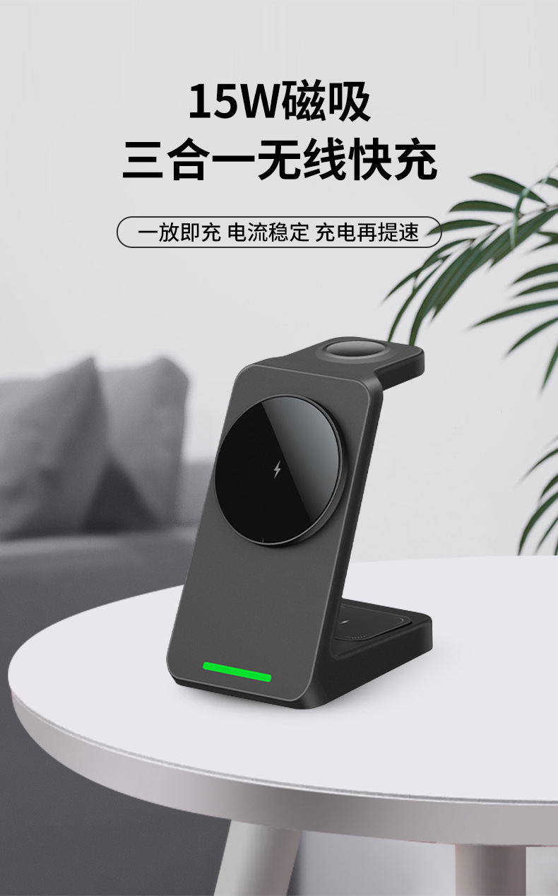 苹果磁吸三合一无线充电器适用手机耳机手表充电
