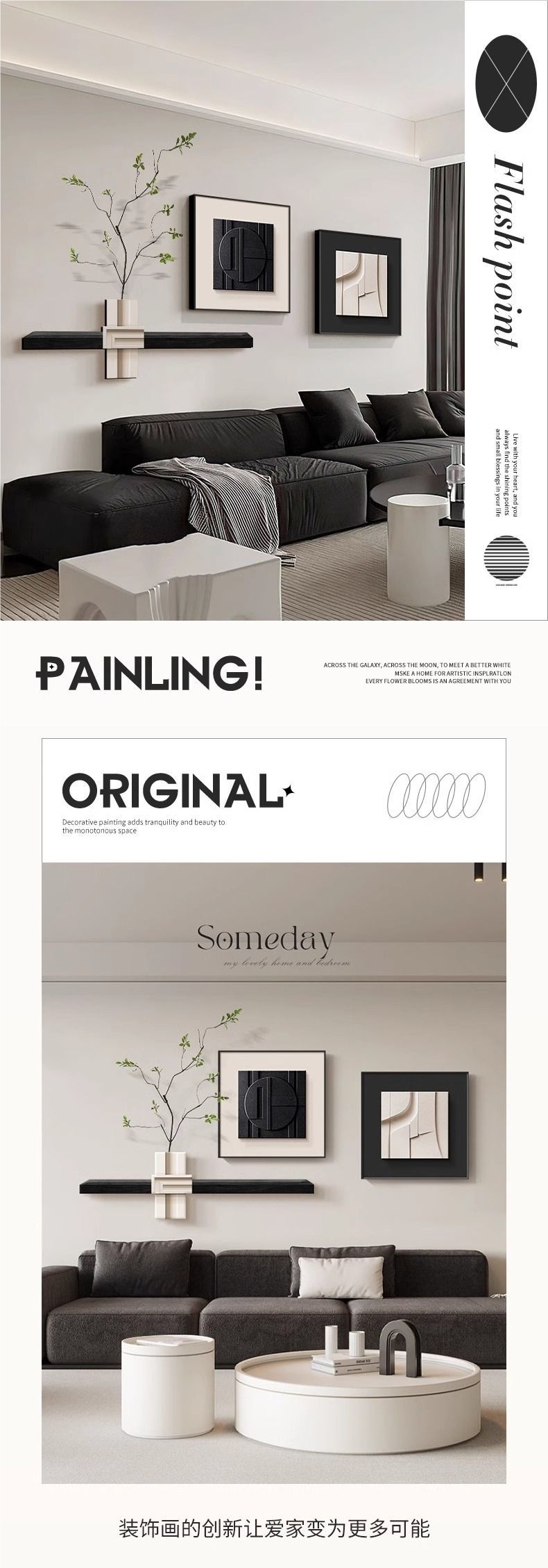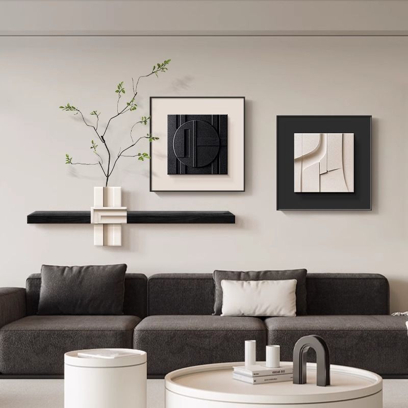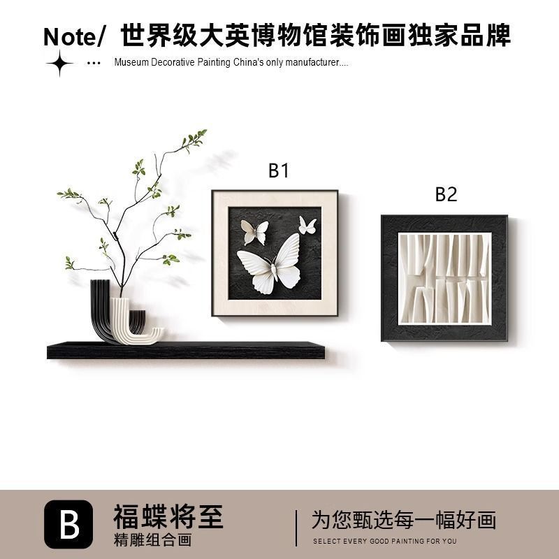 黑白抽象沙发背景墙面挂画轻奢高级感蝴蝶客厅装饰画餐厅玄关壁画
