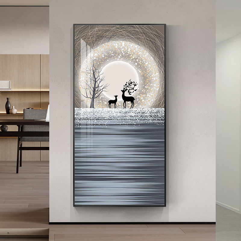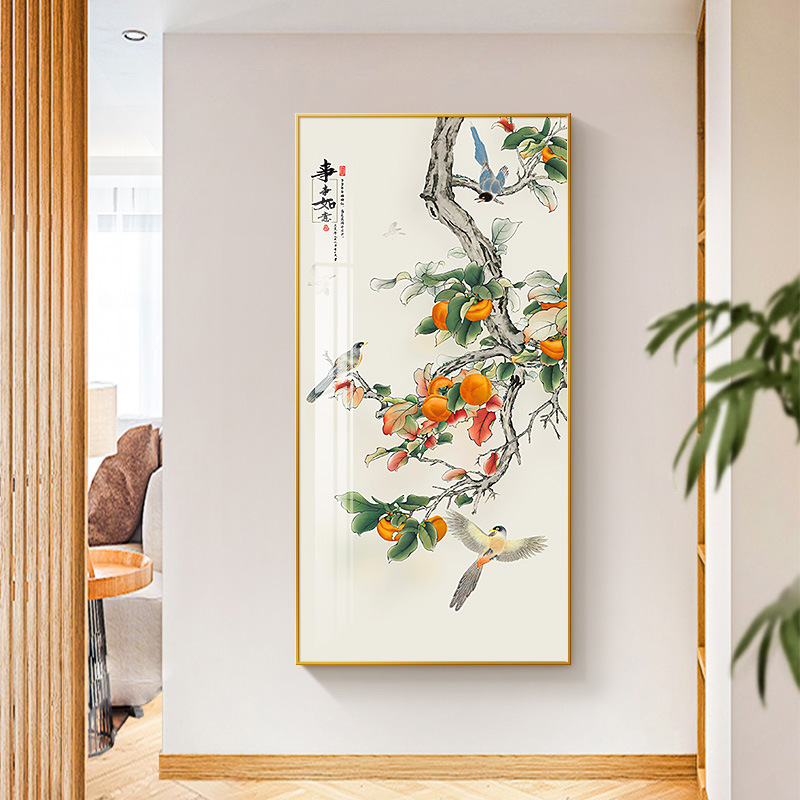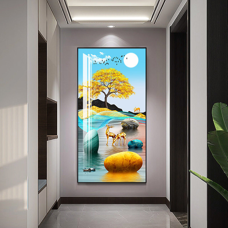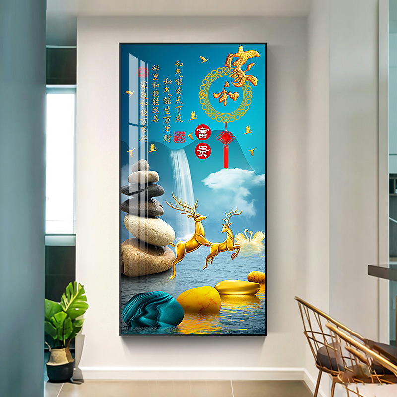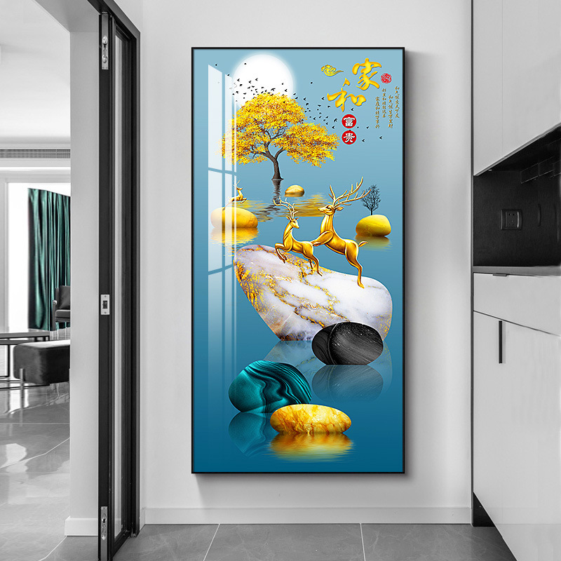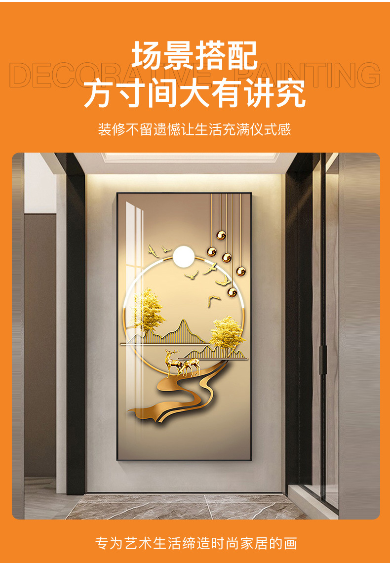 玄关画装饰画新中式现代轻奢晶瓷画客厅壁画走廊过道入户挂画