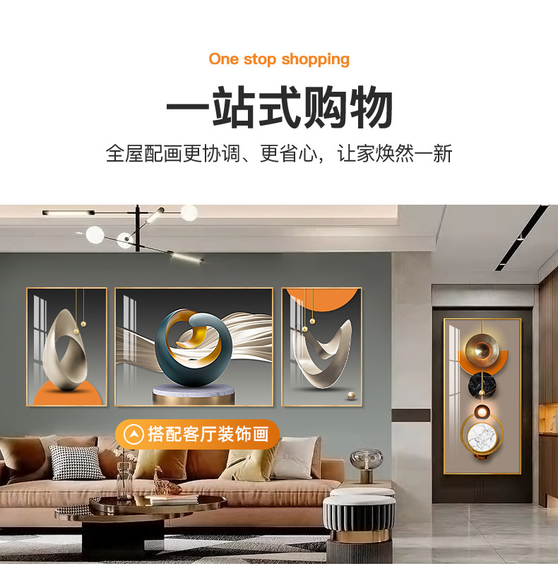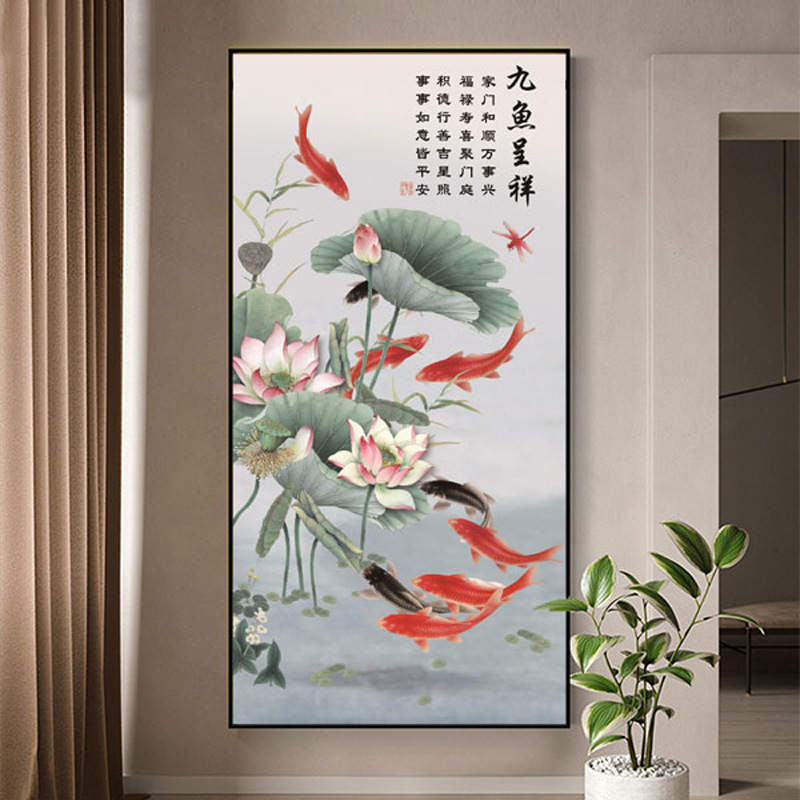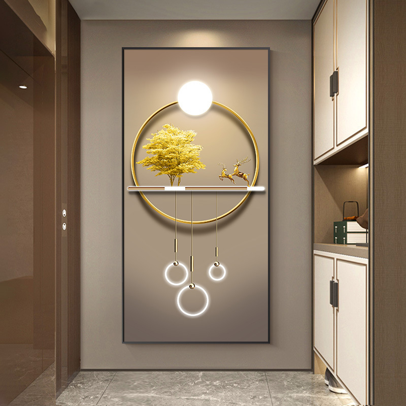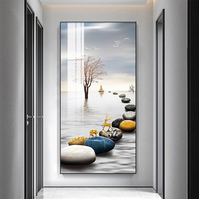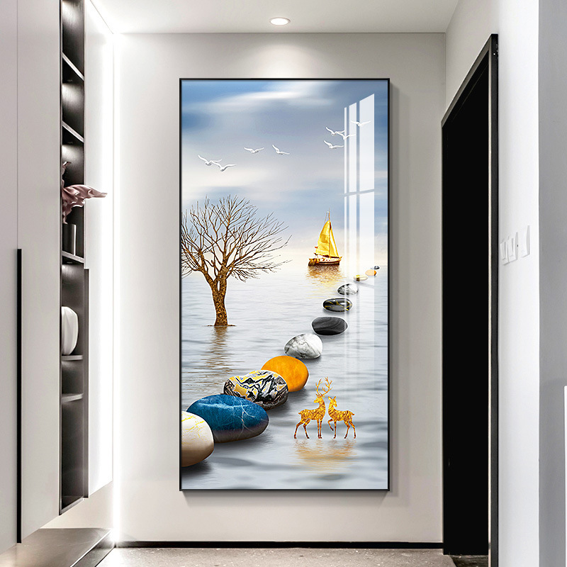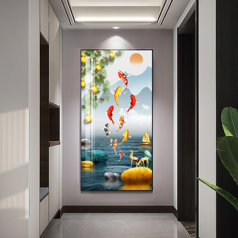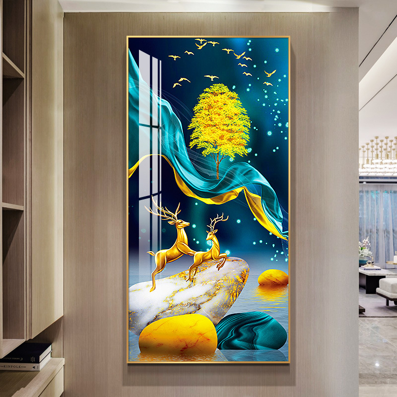 玄关画装饰画新中式现代轻奢晶瓷画客厅壁画走廊过道入户挂画