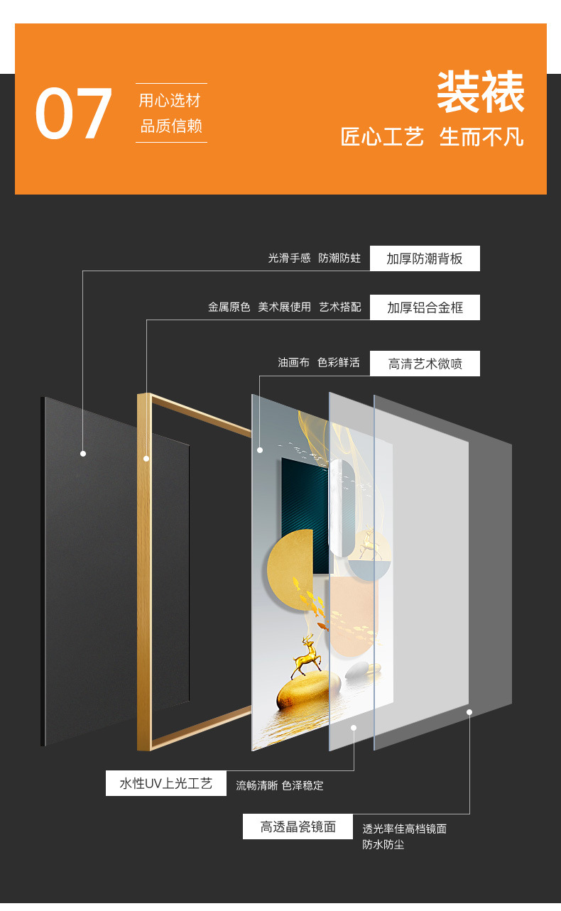 - 80*160cm【铝合金框+晶璃画】可选框色(黑/金)