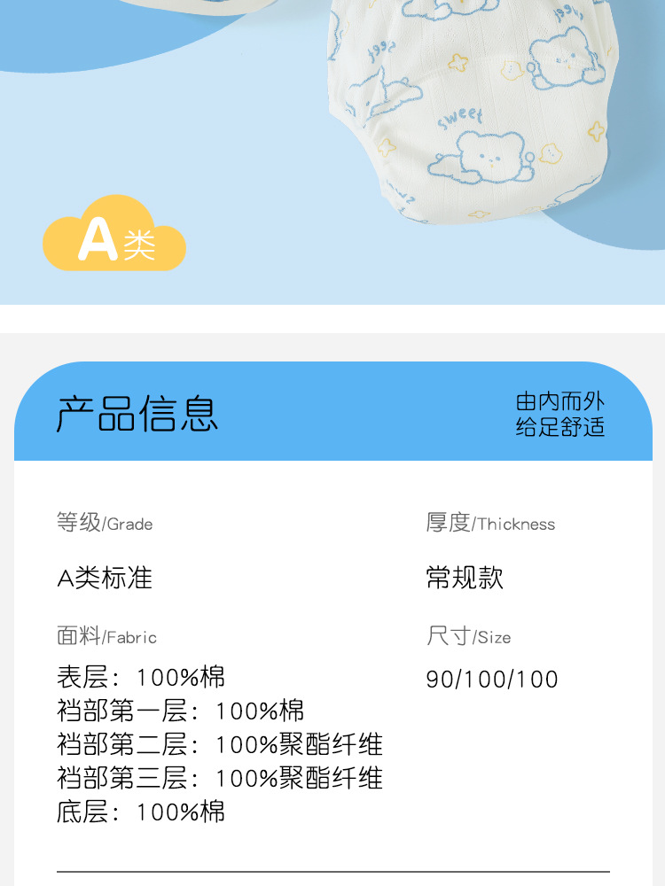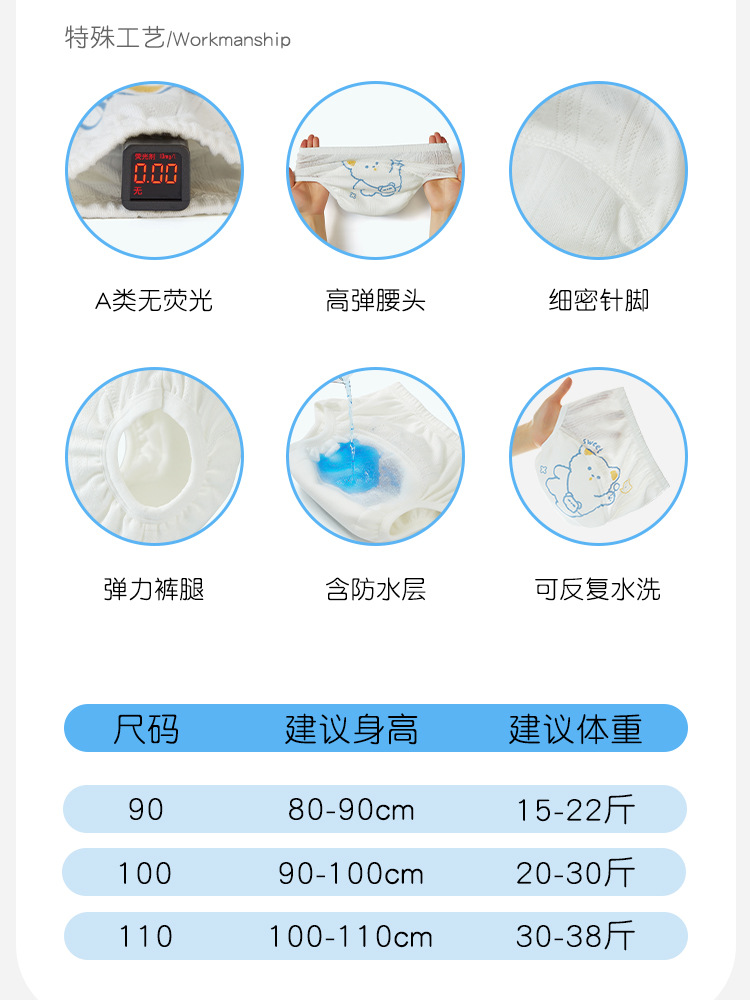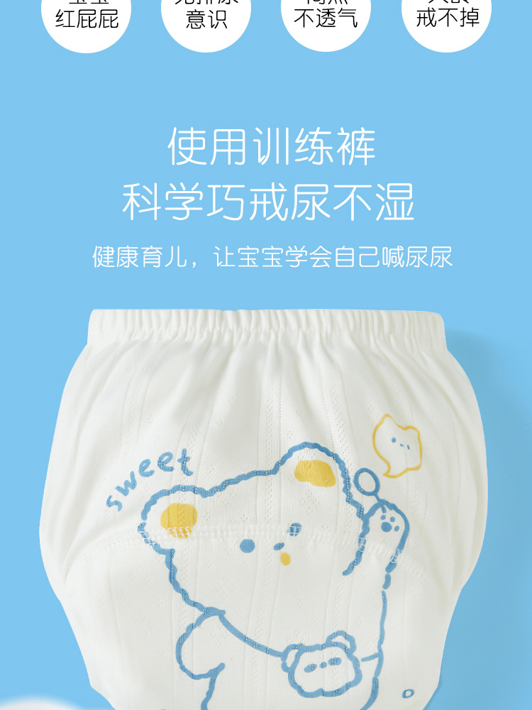 宝宝训练裤夏季a类可洗纱布棉儿童内裤男童女童戒尿裤婴儿尿布裤