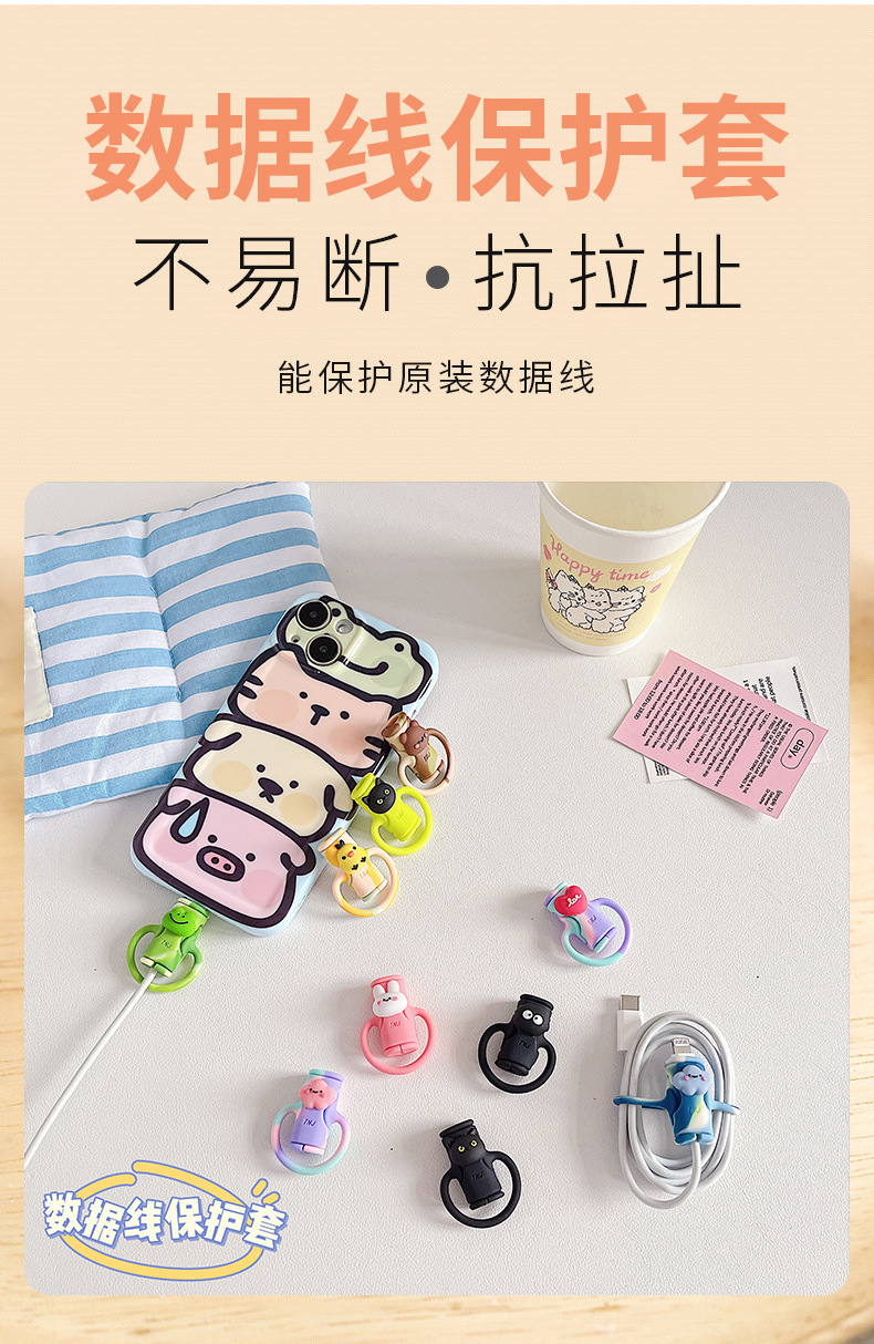 新款卡通数据线保护套 硅胶小动物保护线材断裂手机充电头保护套