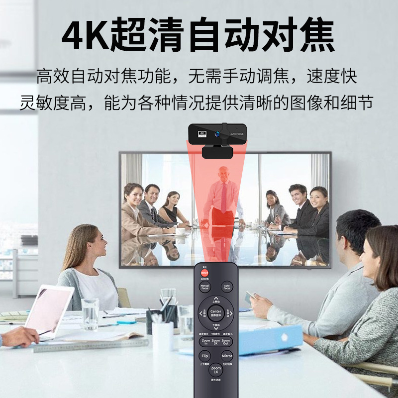 USB网课教学4K高清直播带遥控摄像头带麦克风免驱的电脑摄像头