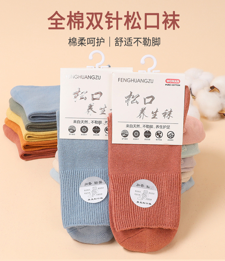 【5双装}松口袜老年人孕妇精梳棉女袜春秋款中筒袜宽口不勒月子袜