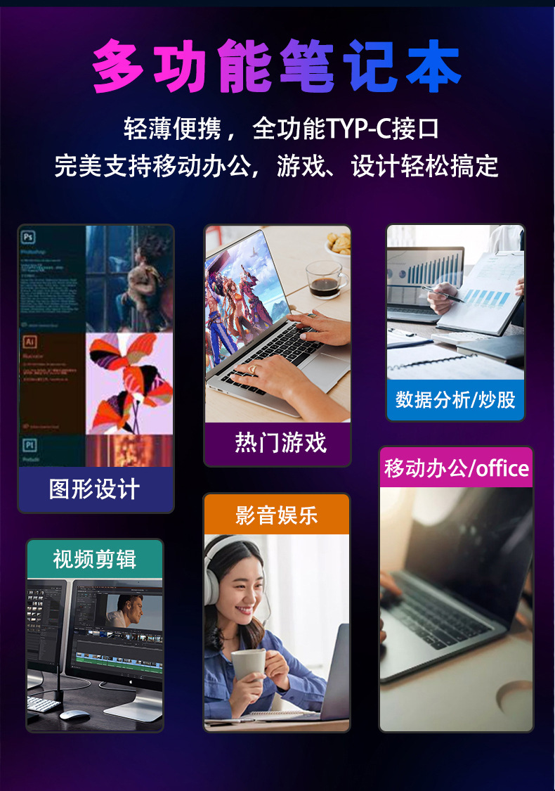 15.6寸笔记本电脑i7四核独显游戏办公商务学习网课直播i5超薄手提