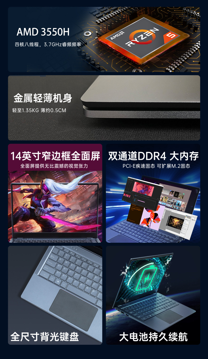 全新14英寸笔记本电脑便捷手提商务办公游戏学习轻薄本R53550H