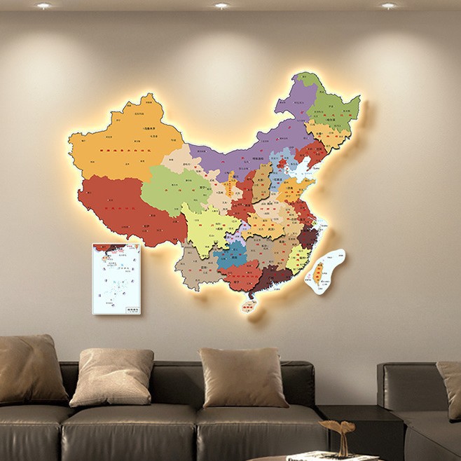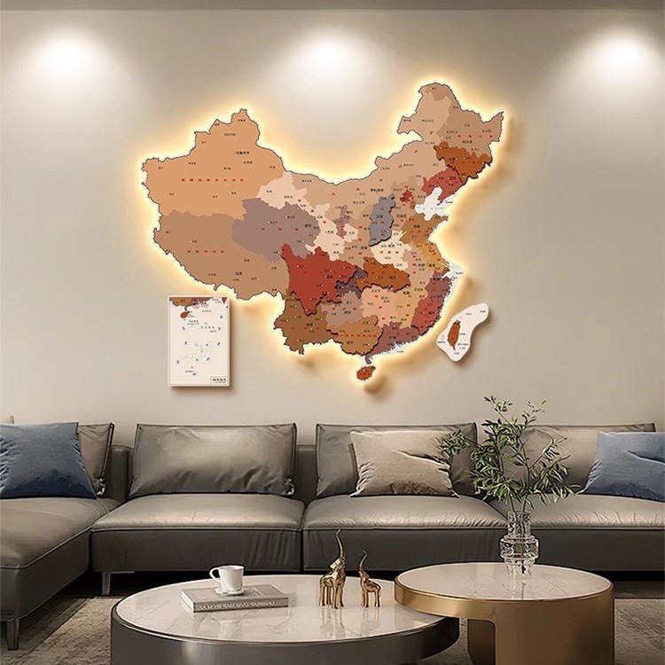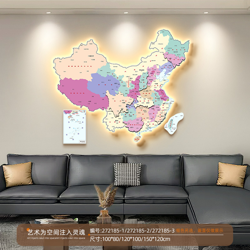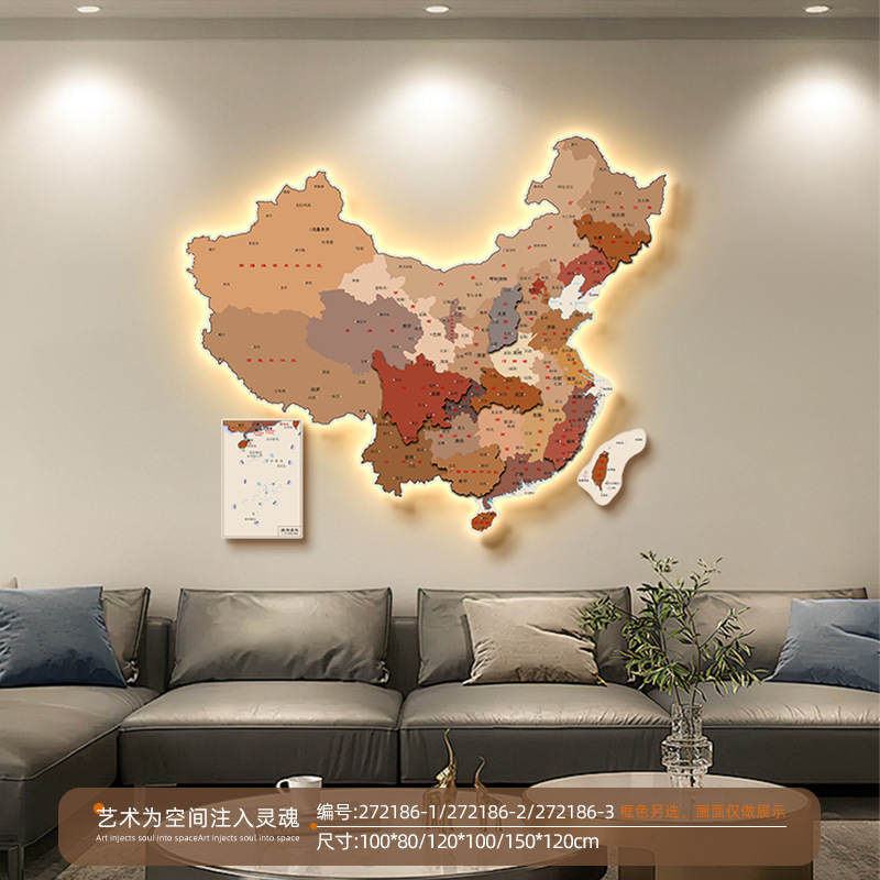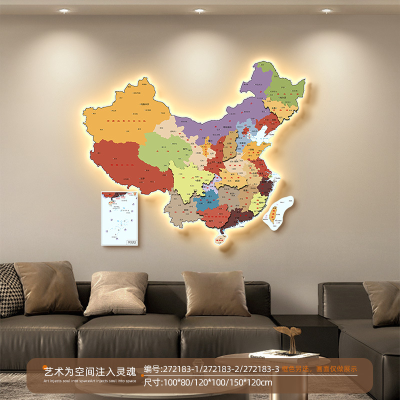 中国地图办公室装饰画led灯画高清客厅沙发背景墙画书房壁画