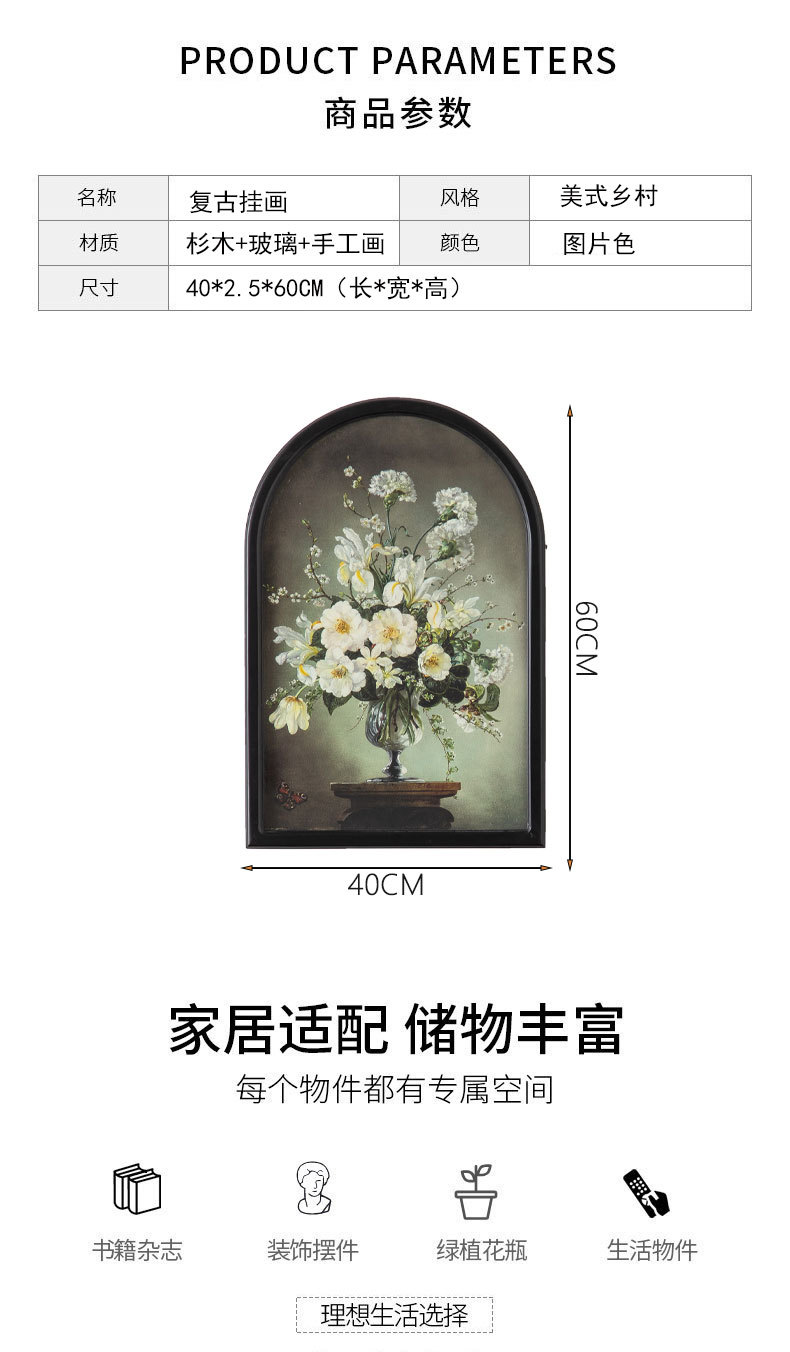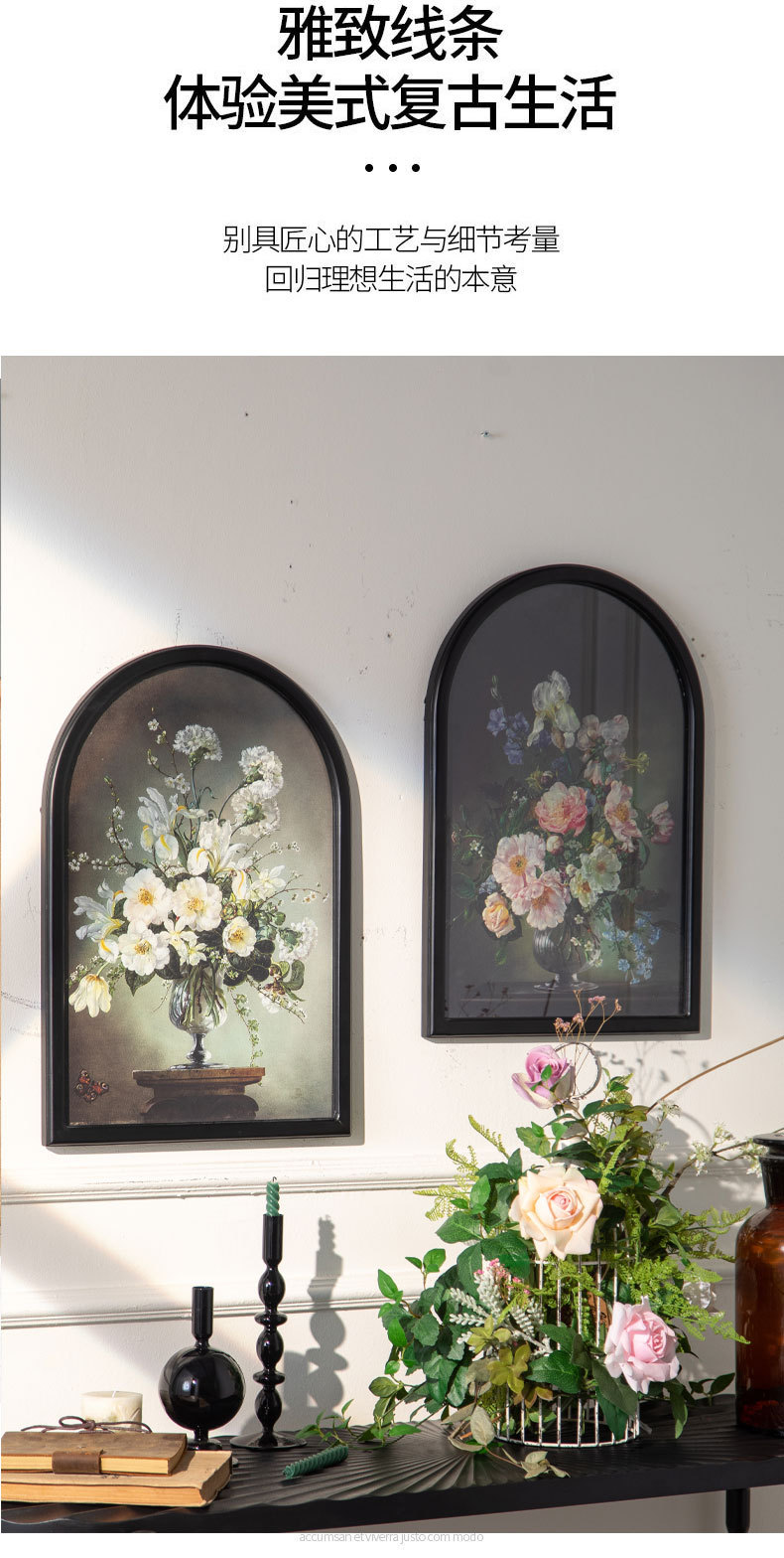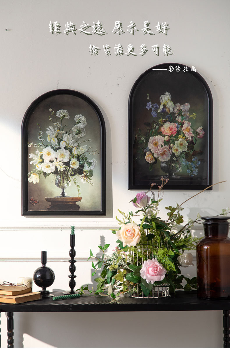 现代美式复古镜面画法式玄关花鸟镜子挂画客厅卧室装饰画软装摆画