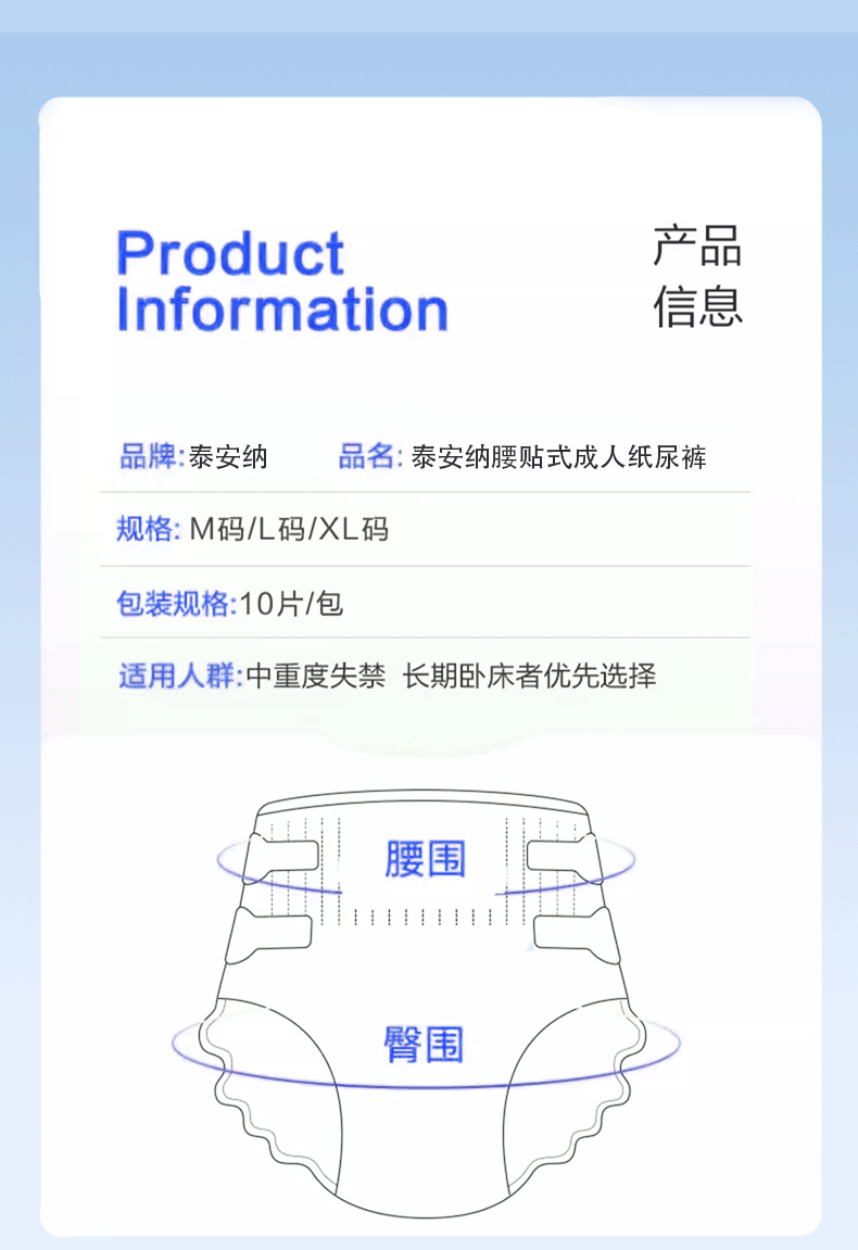 泰安纳成人纸尿裤男女适用老年人失禁护理尿不湿一次性L码裤型