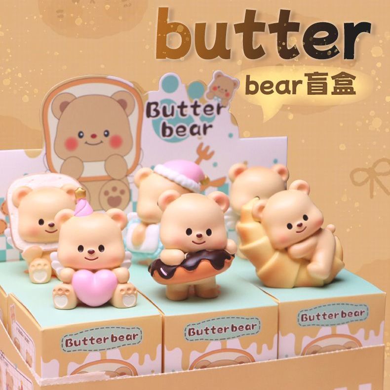 爆款黄油小熊盲盒奶呼呼小熊手办卡通玩偶可爱车载桌面摆件女礼物
