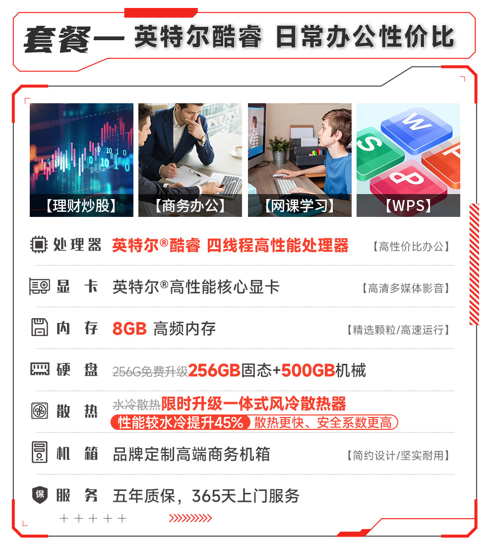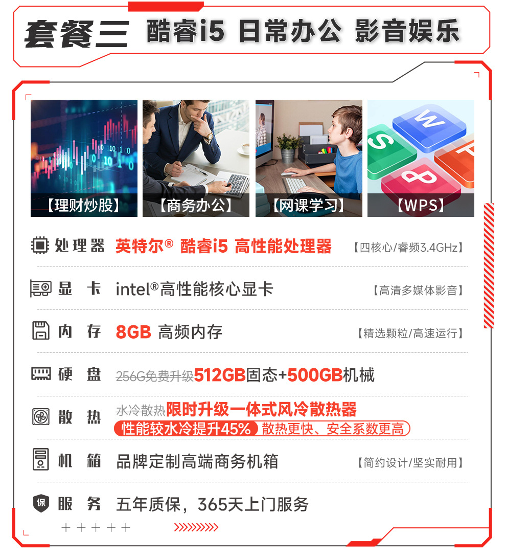 - 套三:办公酷睿i5丨8G丨512G固态+500G机械