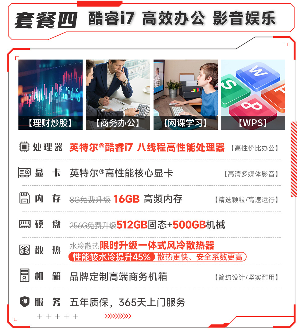 - 套四:办公酷睿i7丨16G丨512G固态+500G机械
