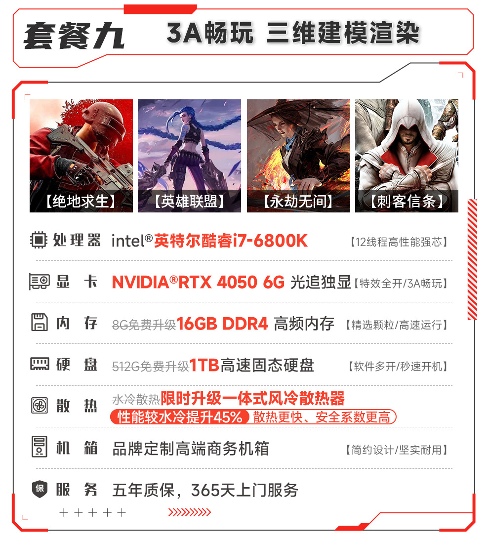 - 套八:酷睿i7丨16G丨1TB丨8G吃鸡独显